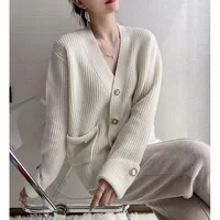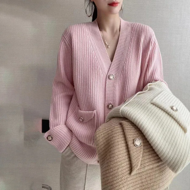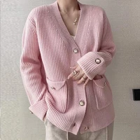 Autumn Button Pocket Knitted Cardigan Fashion Women Winter Casual Loose Coat Korean Tops Knit Sweater