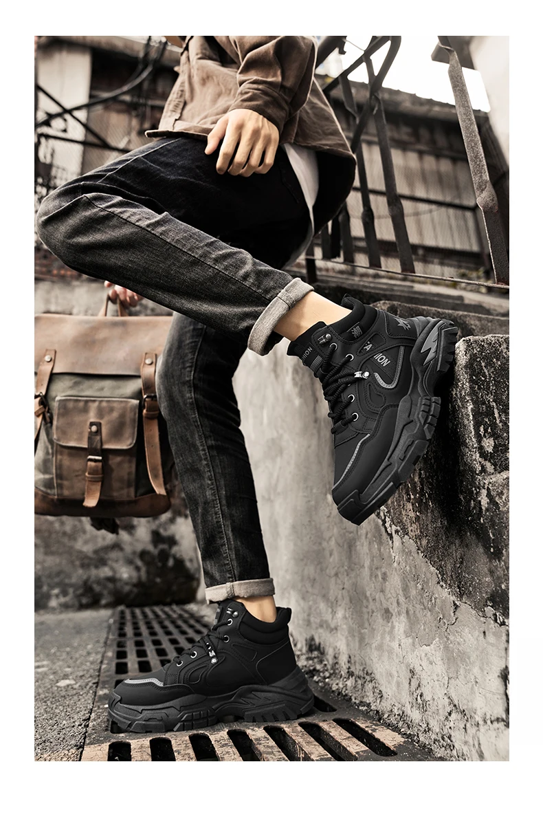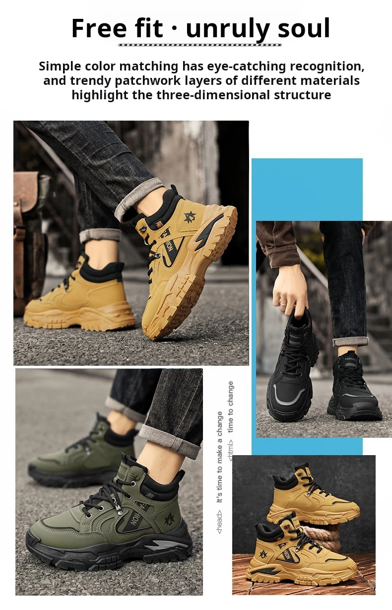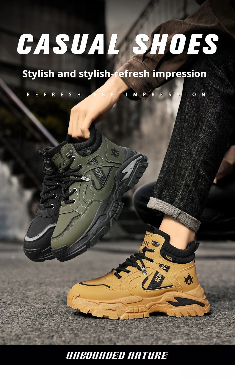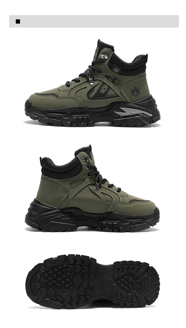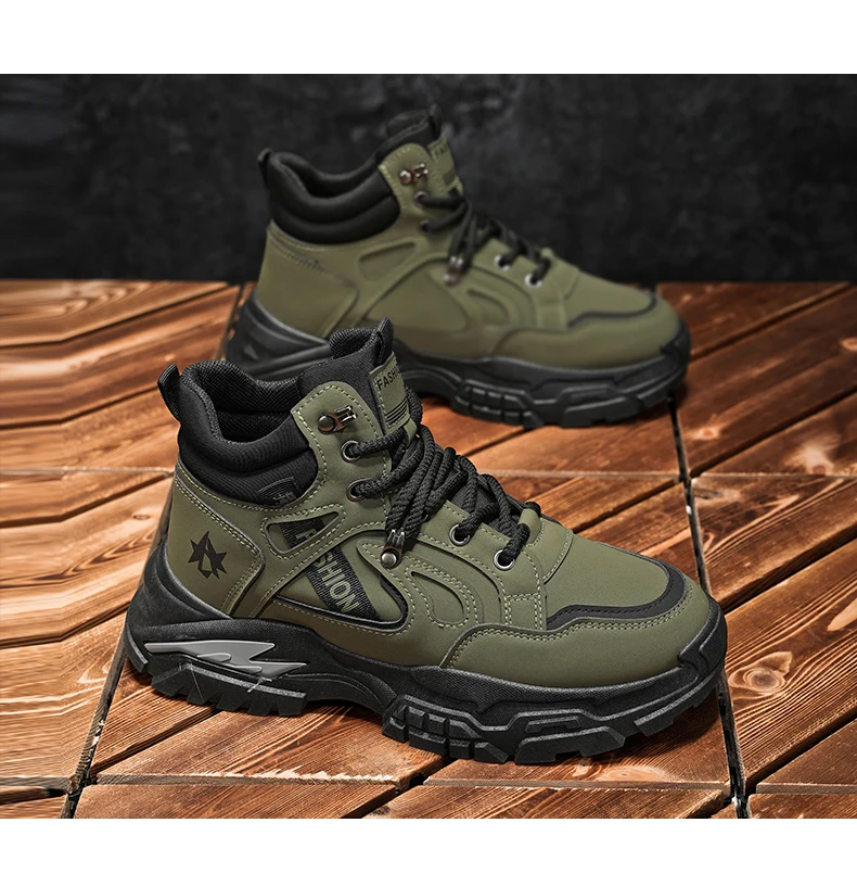 Autumn Green Men’s Motorcycle Boots Outdoor Casual Ankle Boots Man Platform Boots High Top Working