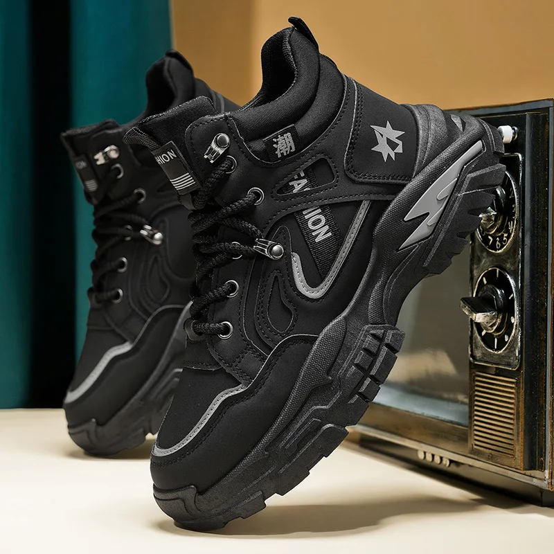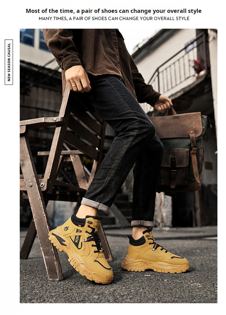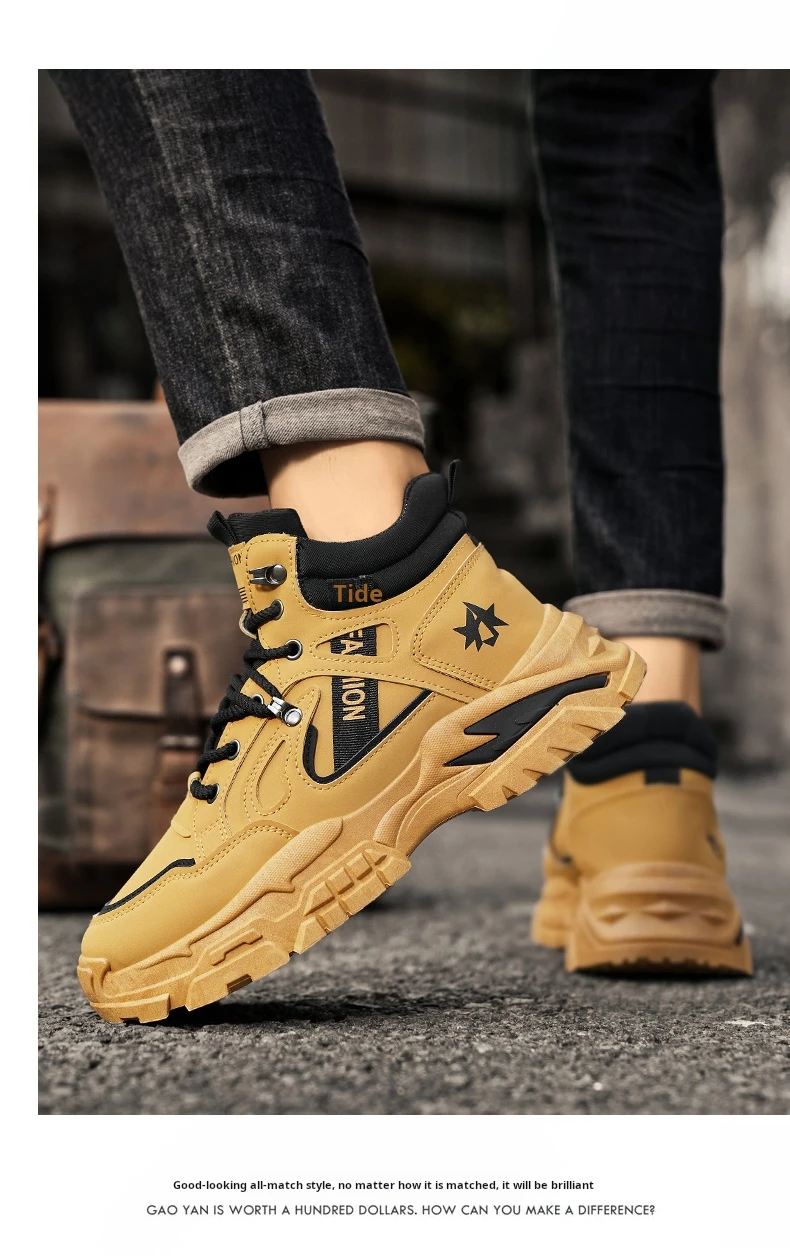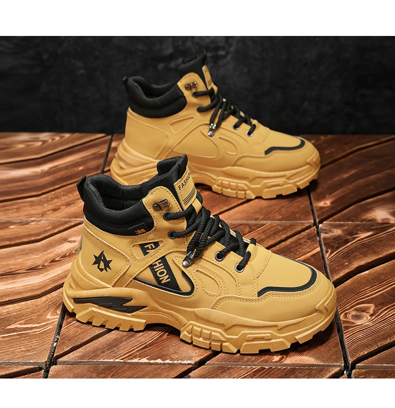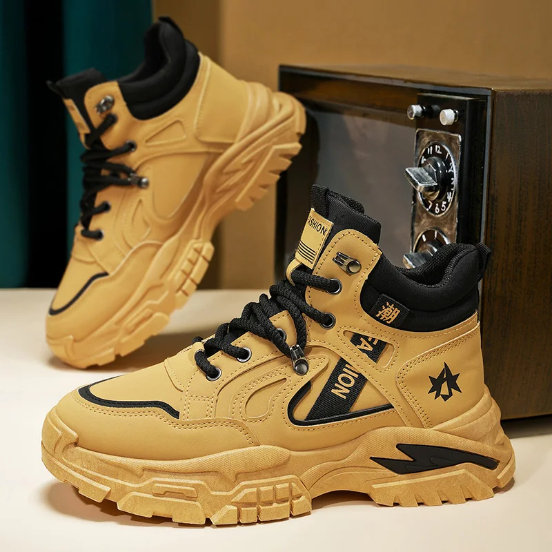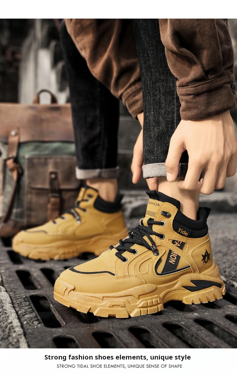 Autumn Green Men’s Motorcycle Boots Outdoor Casual Ankle Boots Man Platform Boots High Top Working