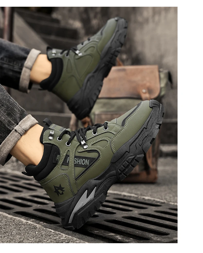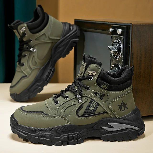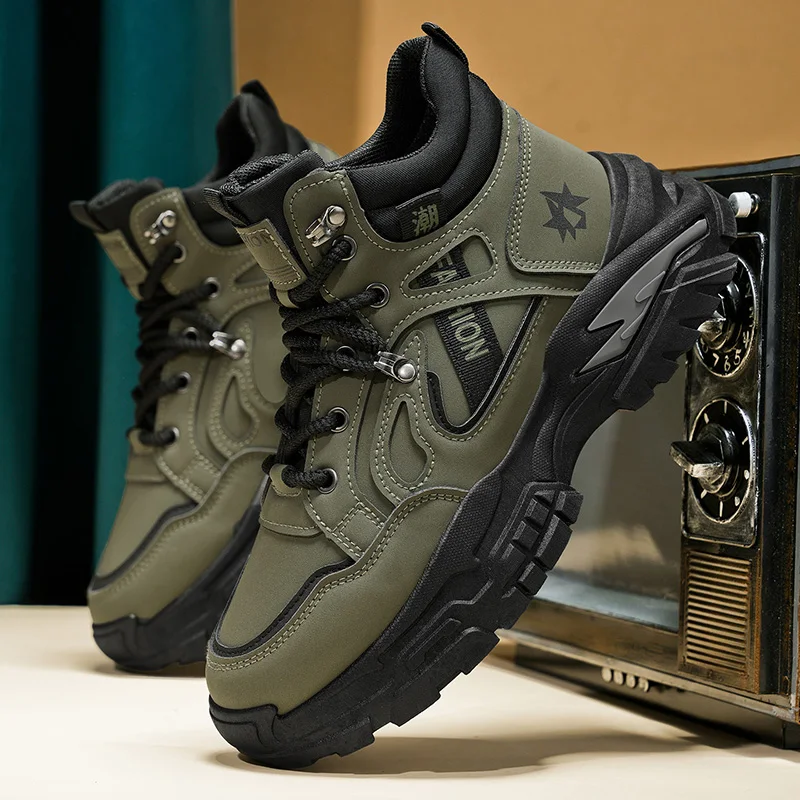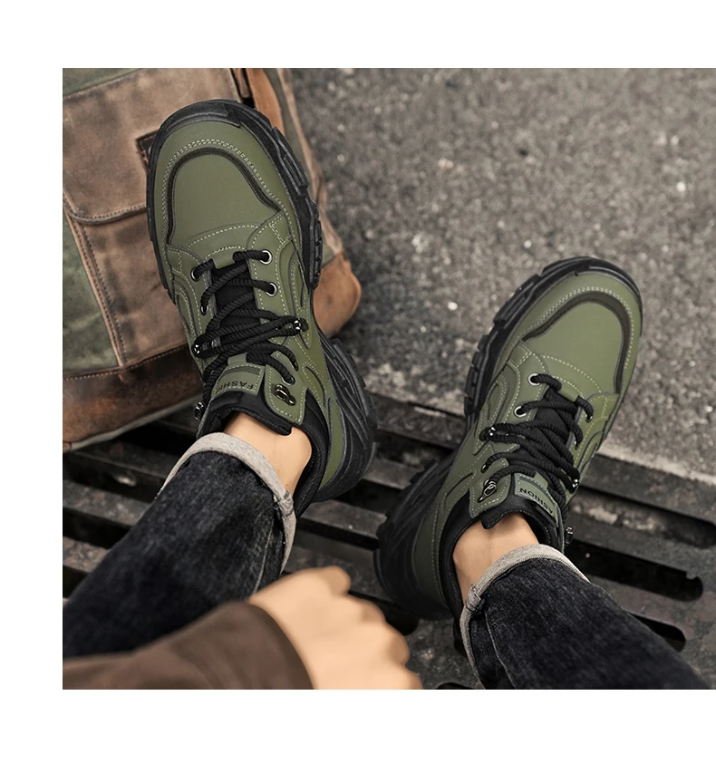 Autumn Green Men's Motorcycle Boots Outdoor Casual Ankle Boots Man Platform Boots High Top Working Shoes for Men Leather Boots