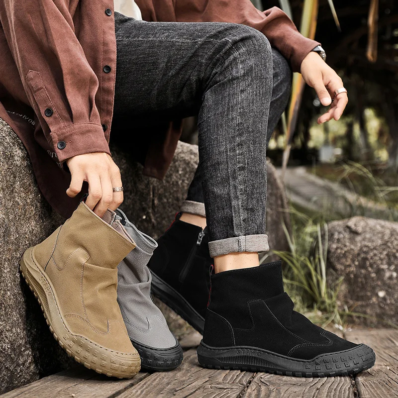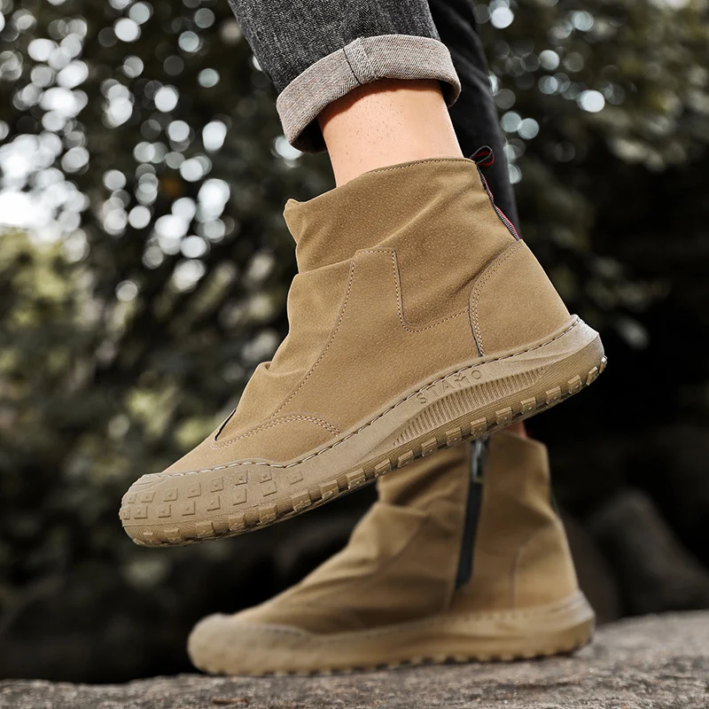 Autumn Men Tooling Boots Wear-resistant Work Boots Men Comfort Safety Boot Non-slip Outdoor Ankle Boots Men Hiking Walking Shoes