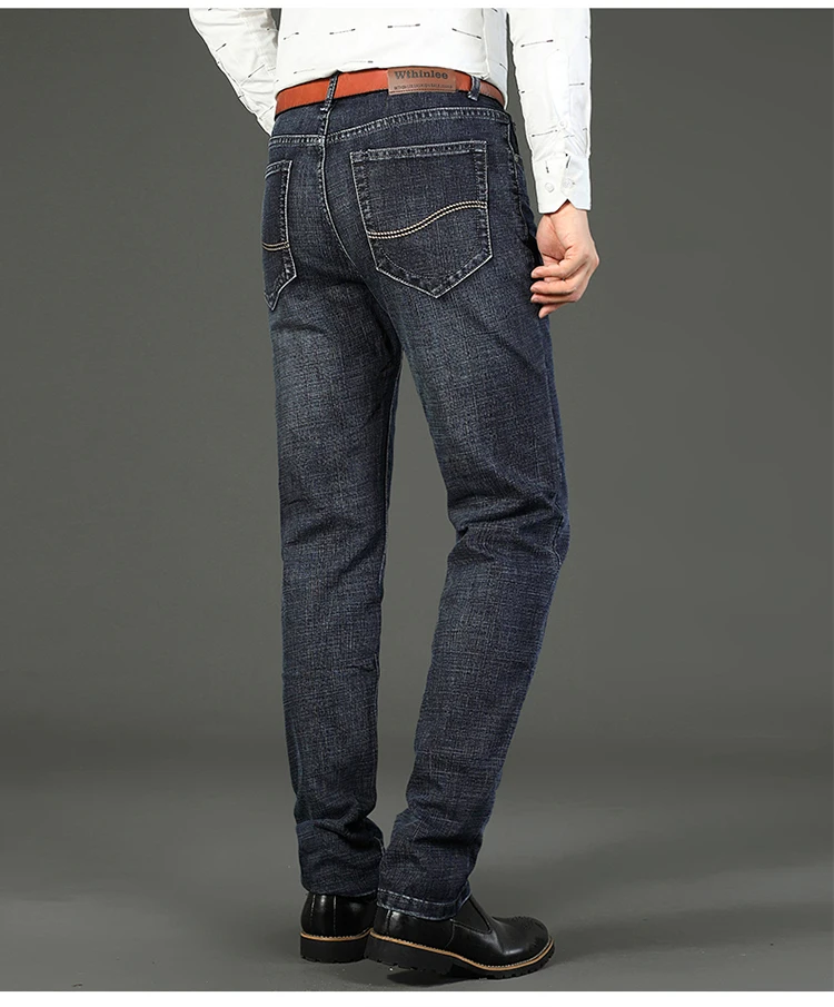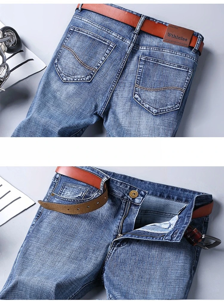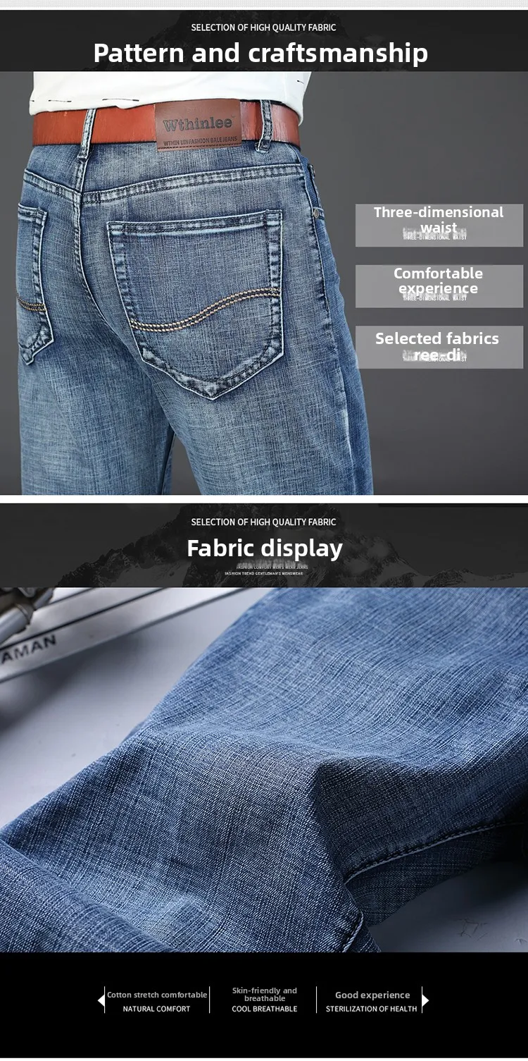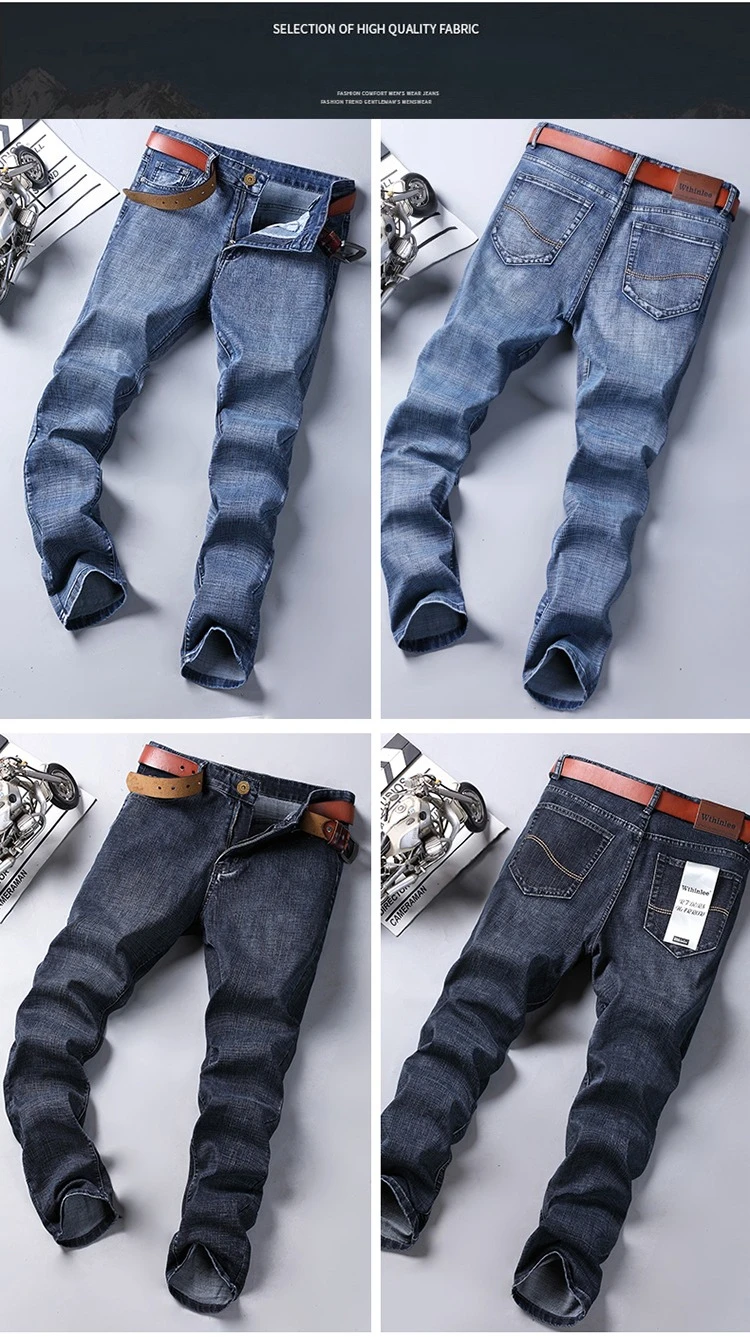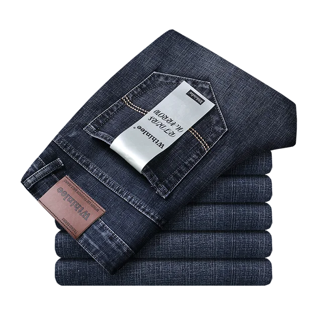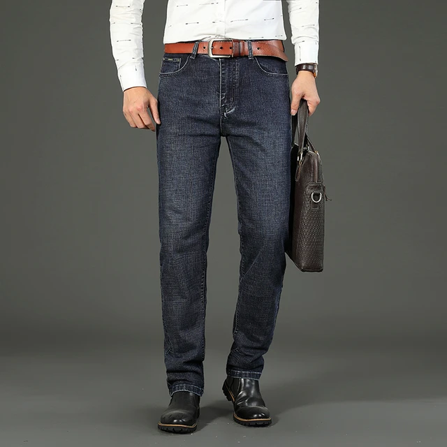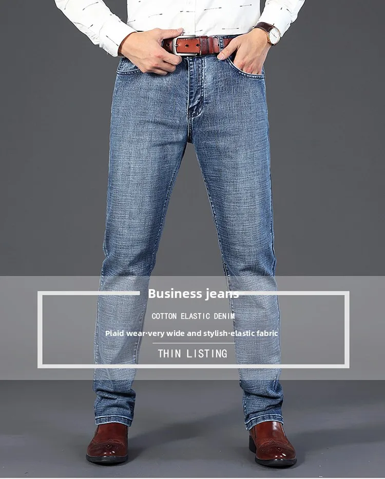 2025 Thin Material Office Business Jeans Men Classic Blue Black Cotton Stretch Straight Denim Pants Male Brand Trousers