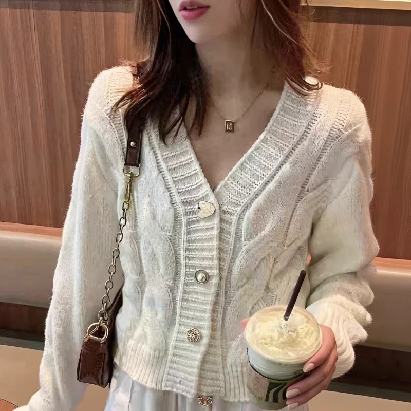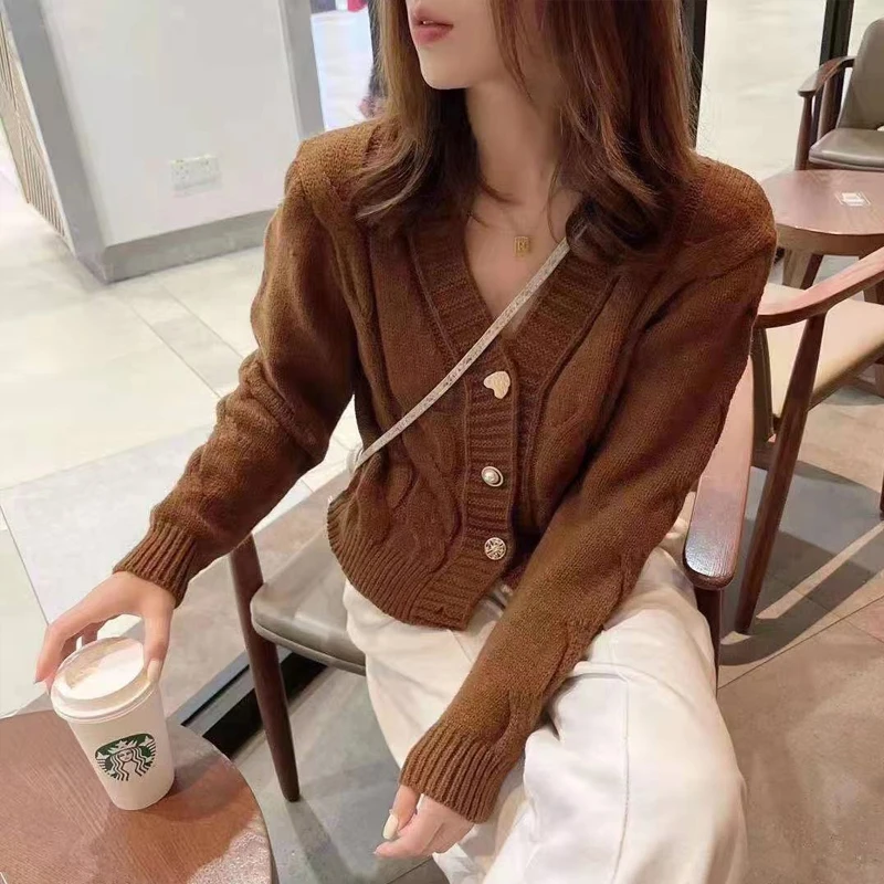 Autumn New Women's Love Button Cardigan Long-sleeved Sweater Fashion Solid Color Casual Winter Women's Knitwear Jacket Top