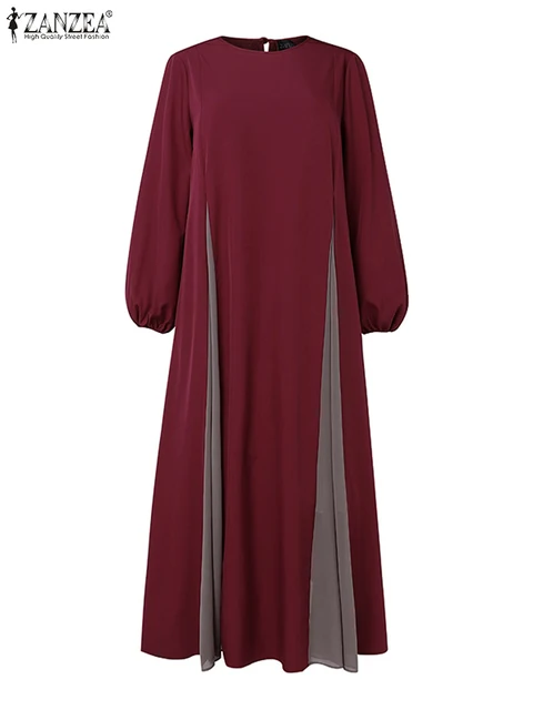 ZANZEA Fashion Women Long Sleeve Muslim Abaya Dress Spring Patchwork Maxi Dresses Robe Femme IsIamic Vestidos Lace Up Sundress