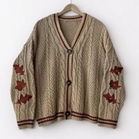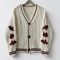 Autumn Red Maple Leaf Embroidered Leaves Knitted Cardigan Women Winter V-neck Single Breasted Show Y2k Style Cardigans Girls