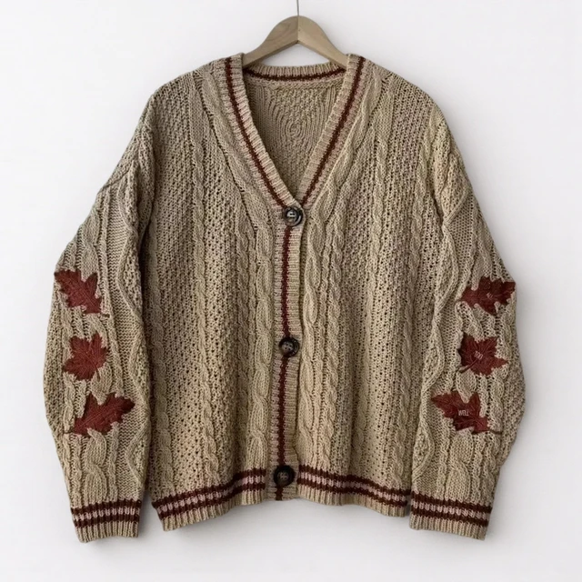 Be the first to review “Autumn Red Maple Leaf Embroidered Leaves Knitted Cardigan Women Winter V-neck Single Breasted Show Y2k”