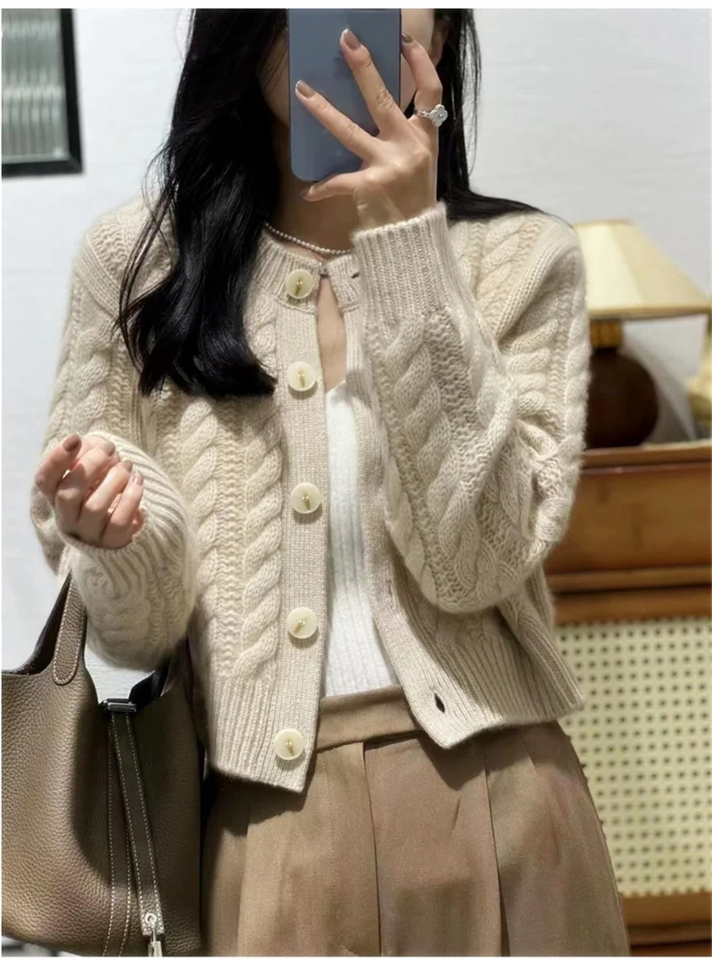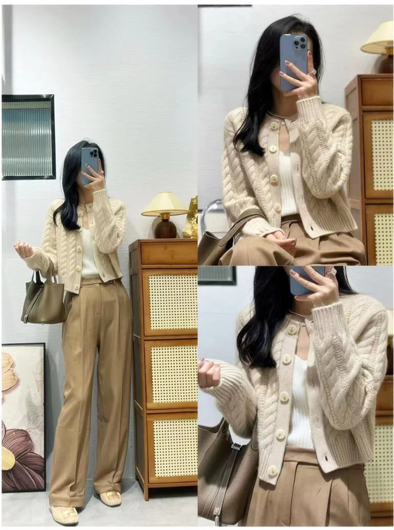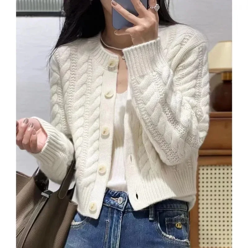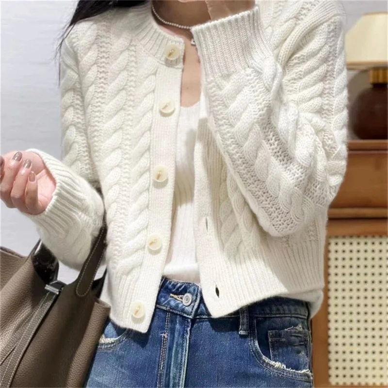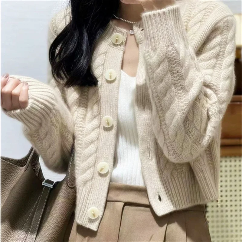 2025 Fall Winter New Fashion Women's Sweater Loose-fit Knit Cardigan Single-button Closure Solid-color Minimalist Top Jacket