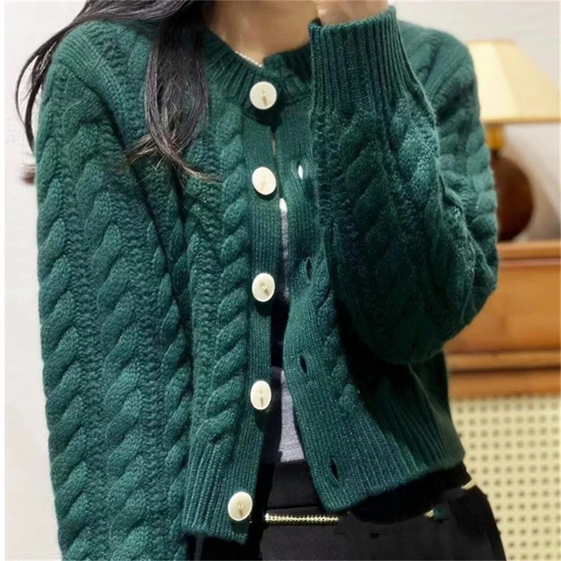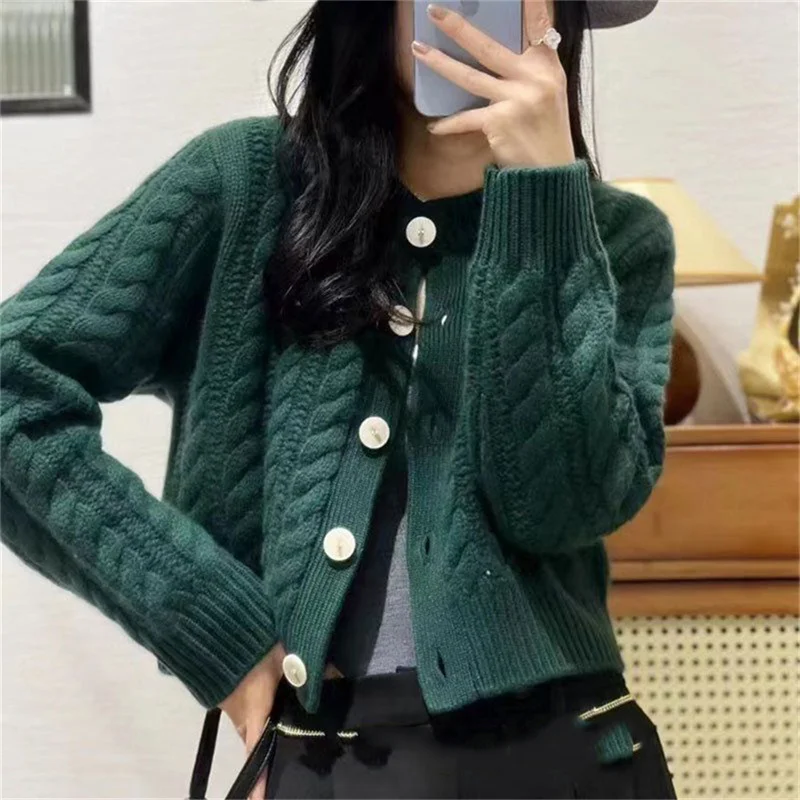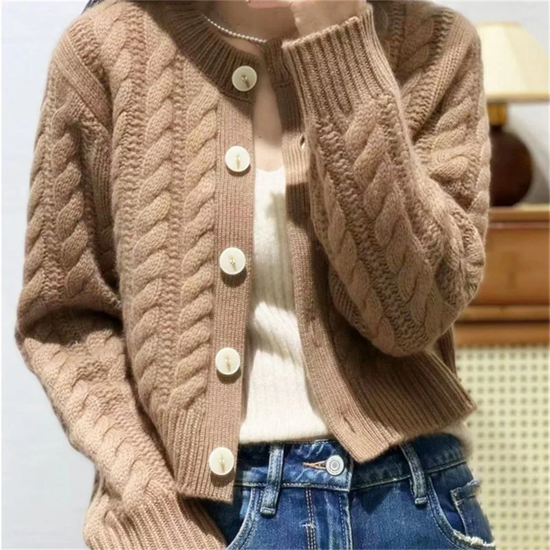 2025 Women Fashion Knitted Cardigans Long Sleeve Button Checkered Print O-Neck Sweater Cardigan Autumn Winter New Outerwear