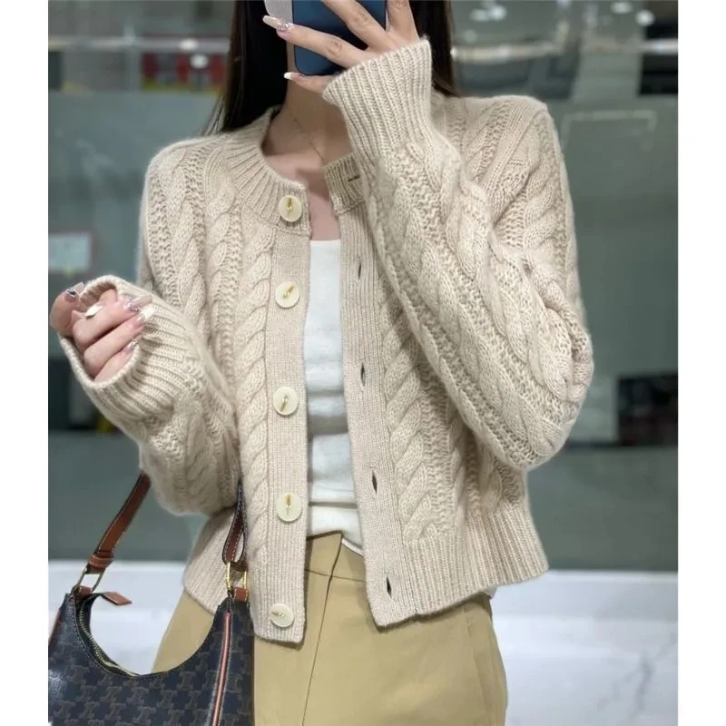 2025 Fall Winter New Fashion Women's Sweater Loose-fit Knit Cardigan Single-button Closure Solid-color Minimalist Top Jacket