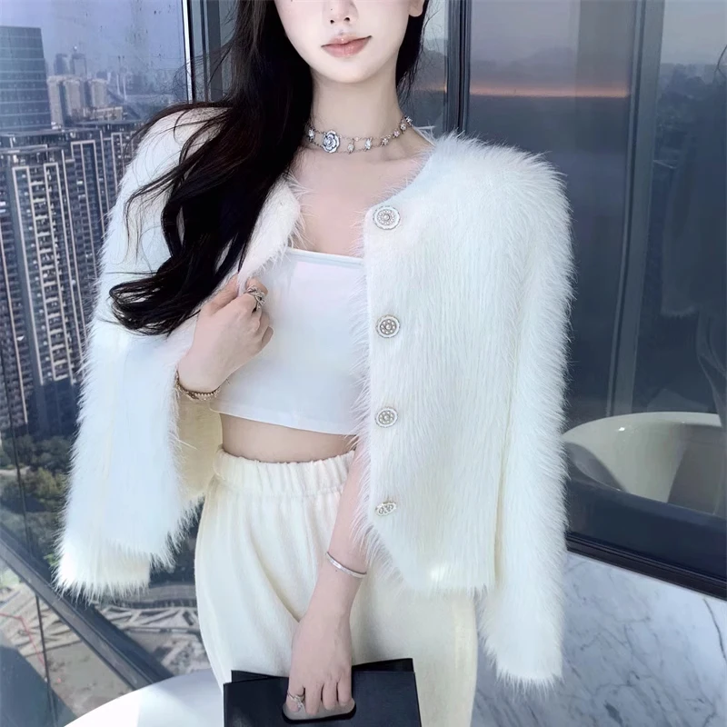 Autumn Warm Women Crop Cardigan Korean Knitted Elegant Female Casual Sweaters Fashion Imitation Mink