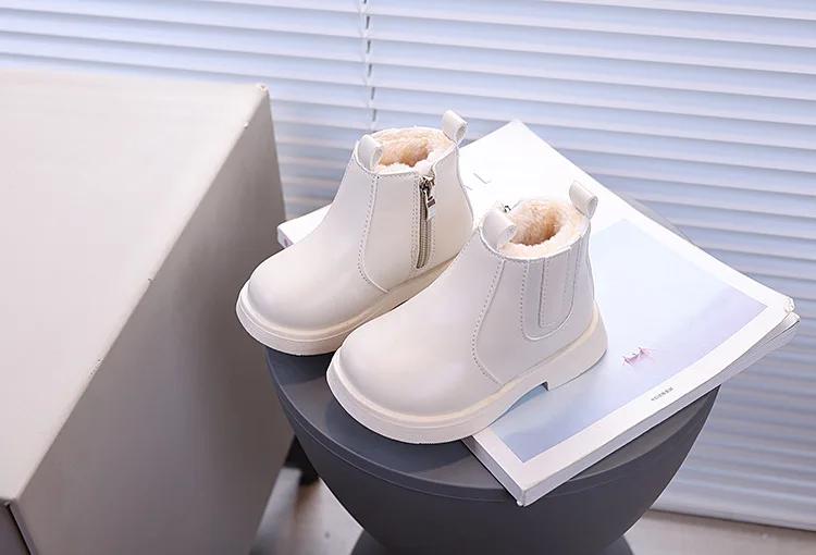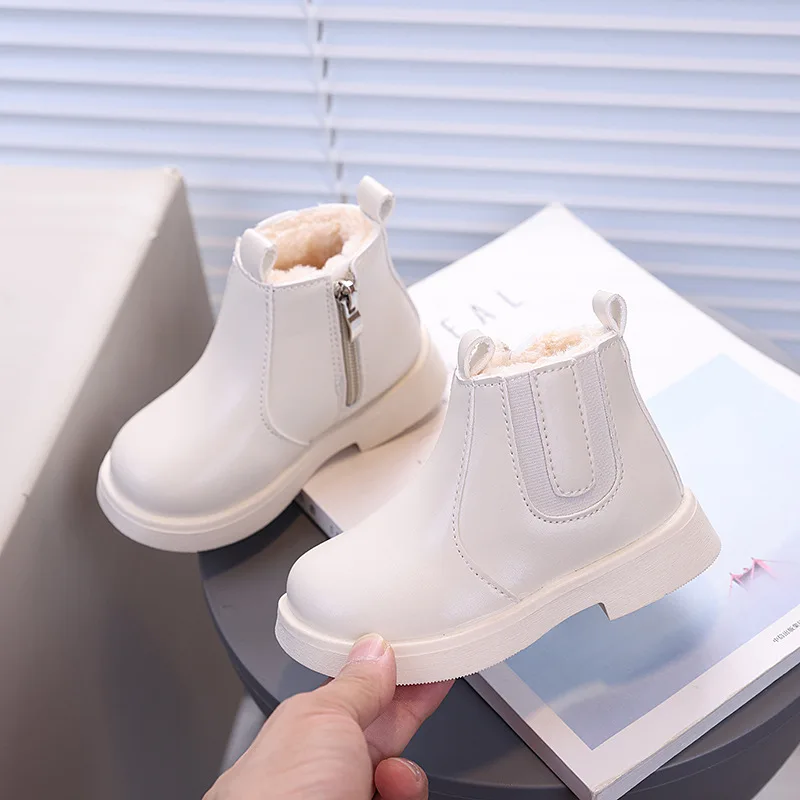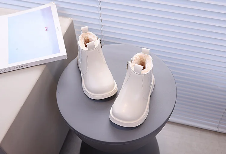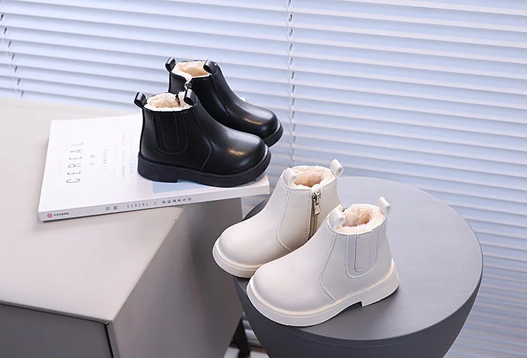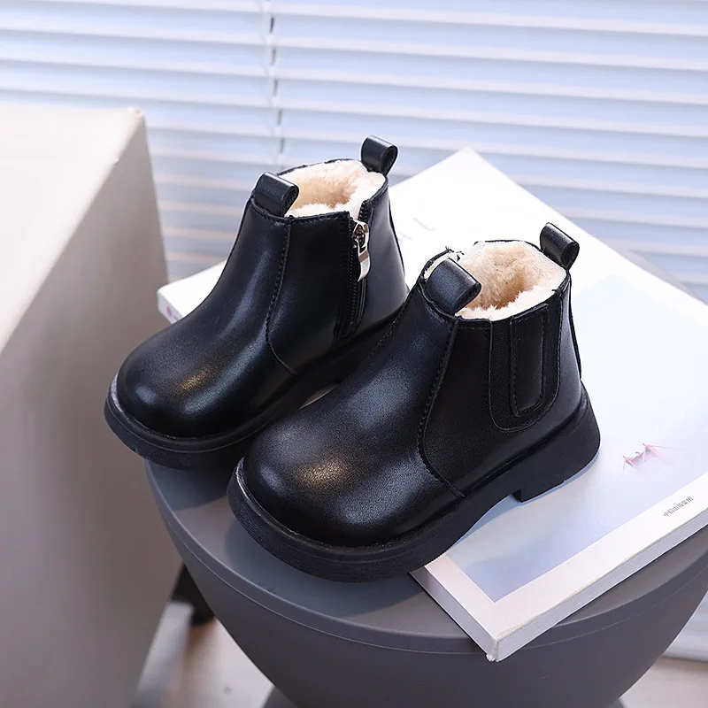 Children's Fashion Cotton Shoes Boys' Warm Winter Cotton Lined Ankle Boots for Boys Girls Side Zipper Retro Snow Thermal Boots