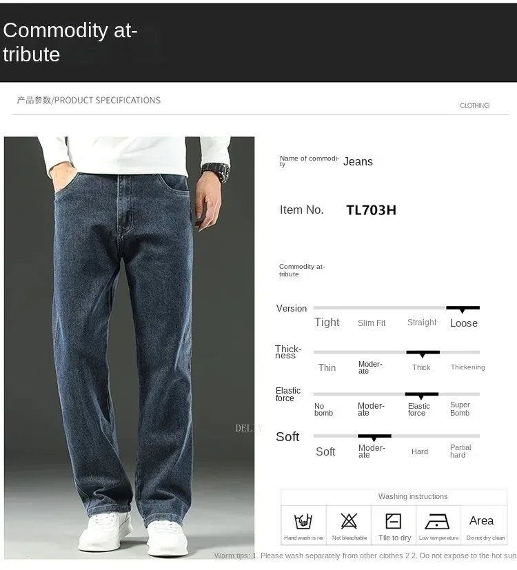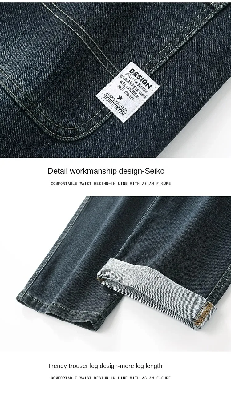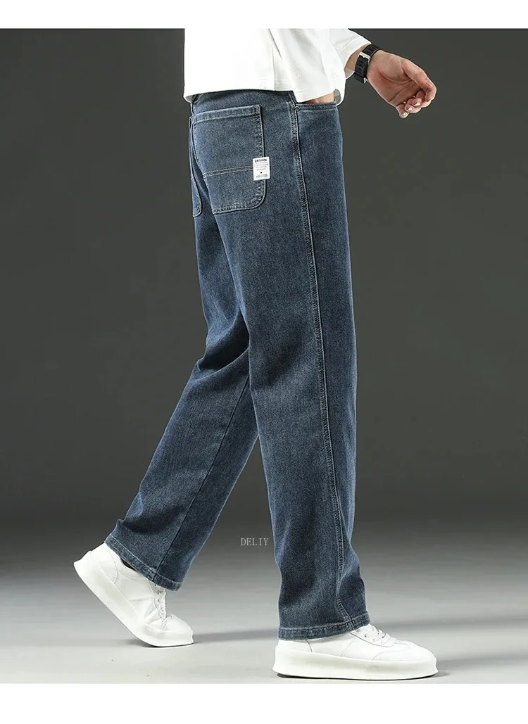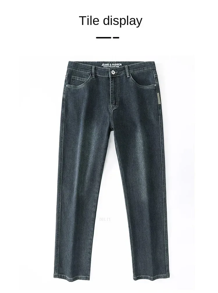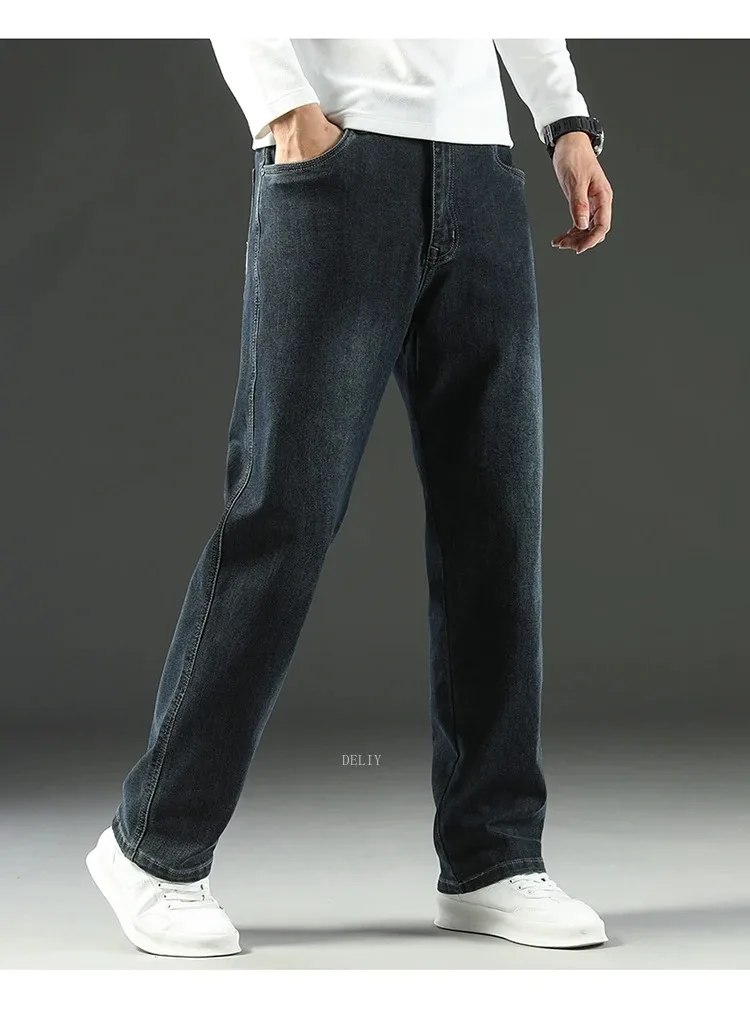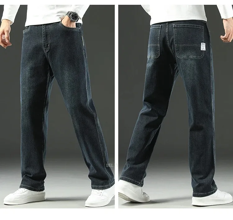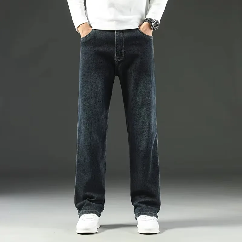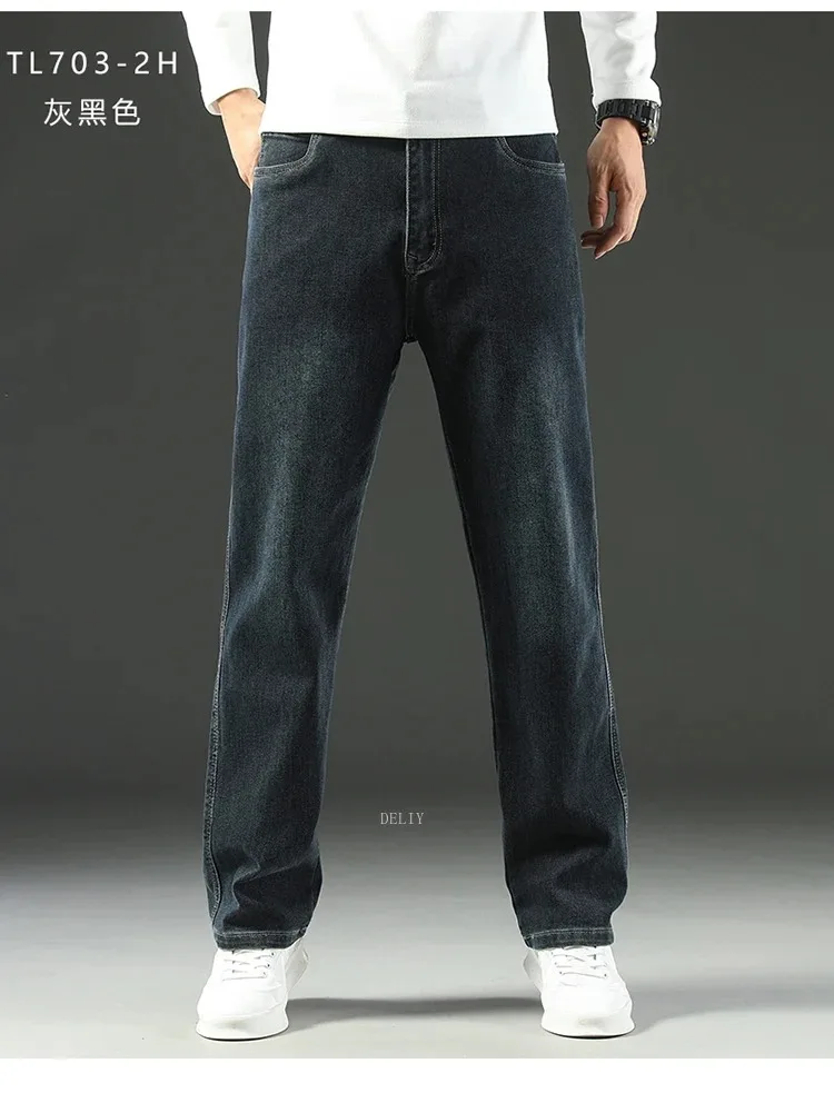 Men High End Elasticity Jeans Male Loose Straight Fashion Casual Denim Pants Vintage Business Versatile Slim Fit Black Trousers