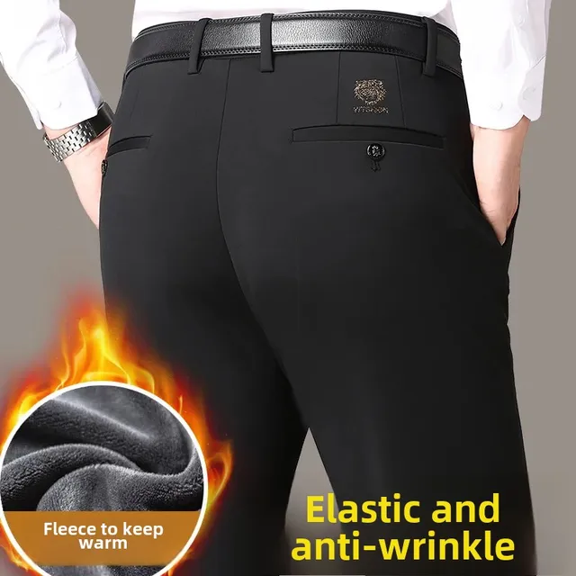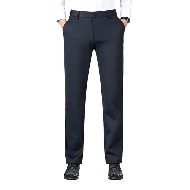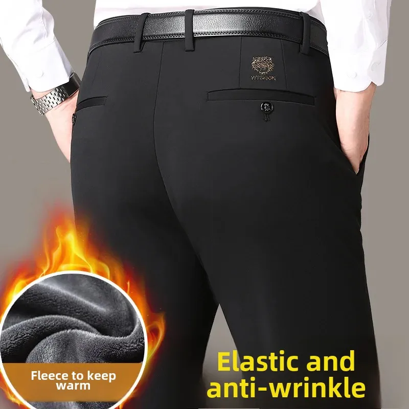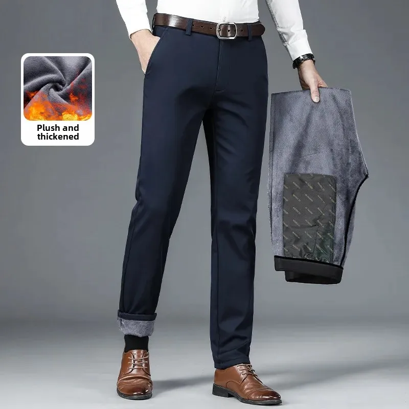 Autumn/Winter Casual Men’s Knit Pants Four-Sided Stretch Business Long Pants Fleece-Lined Loose