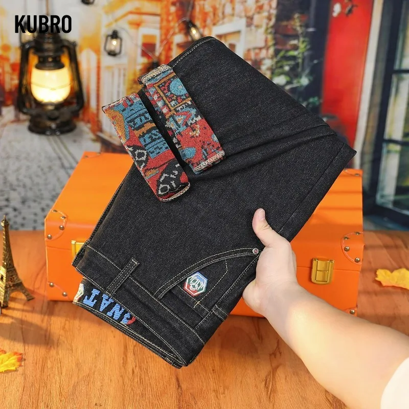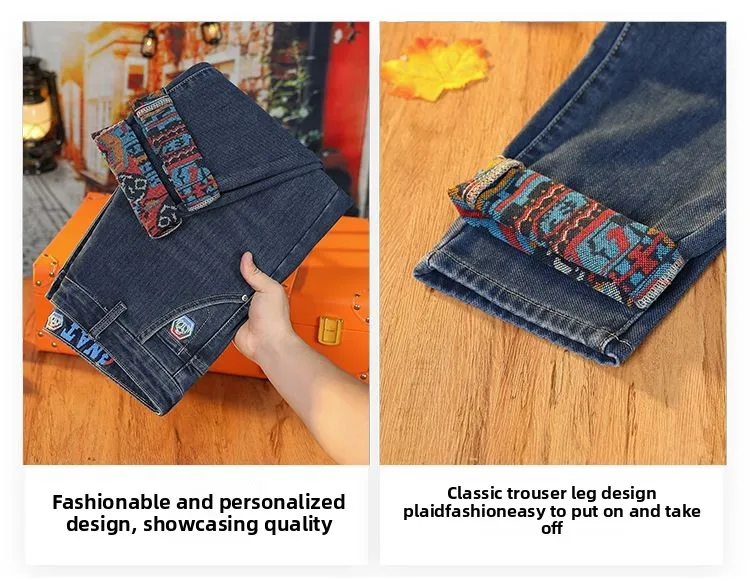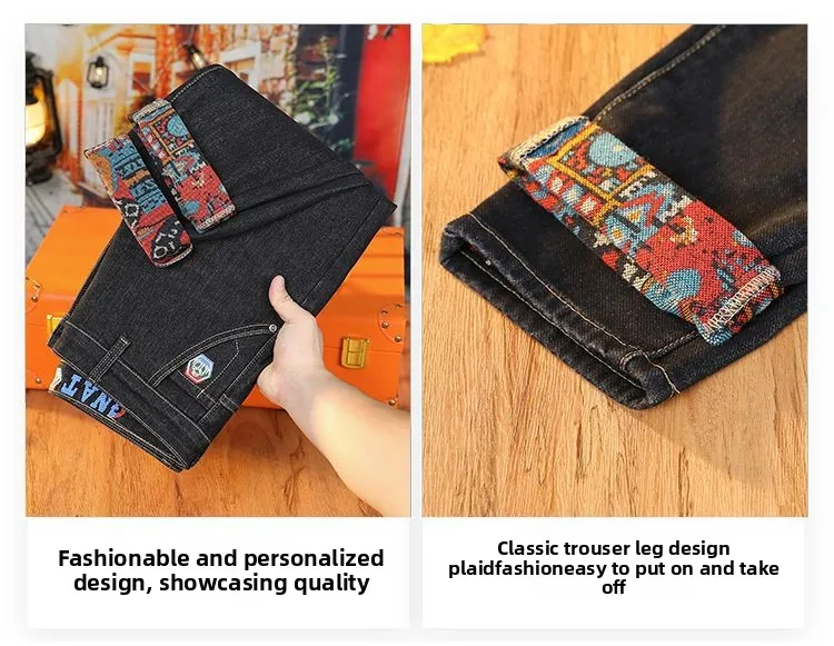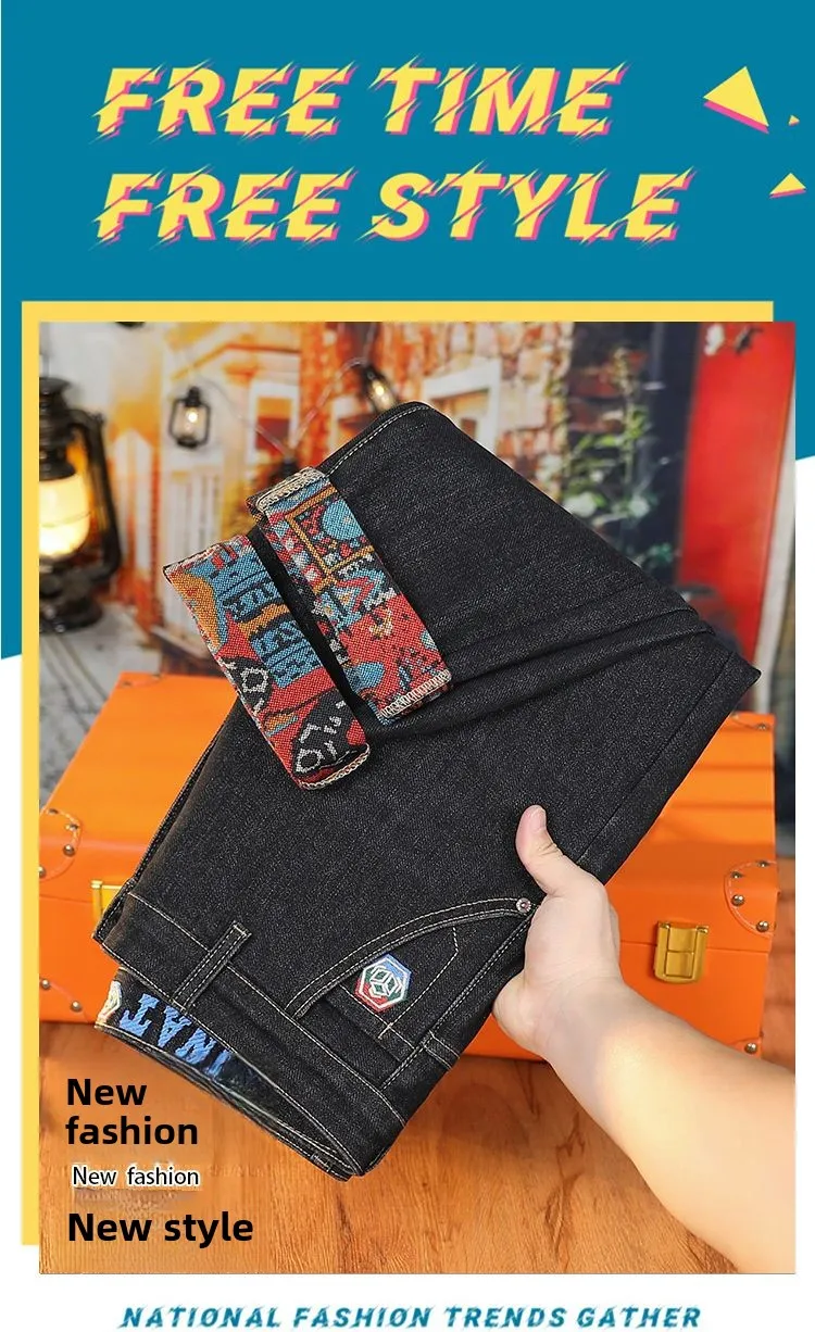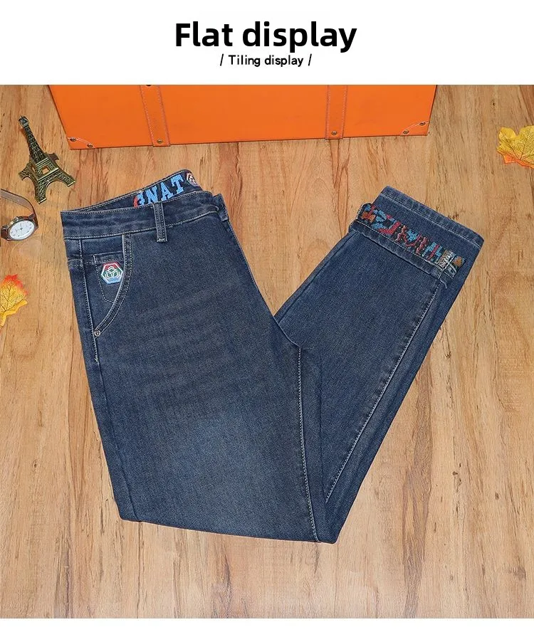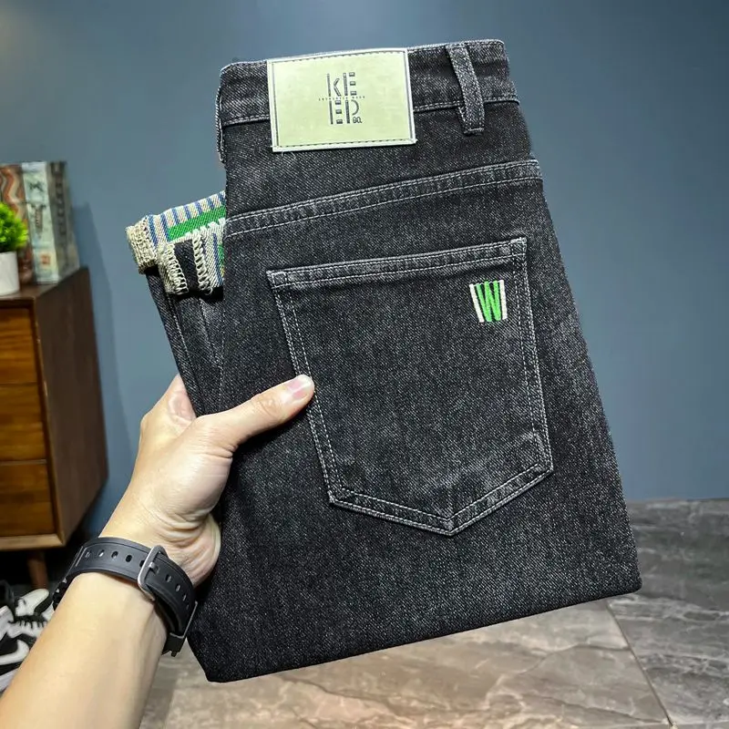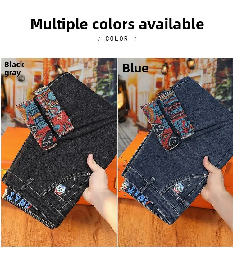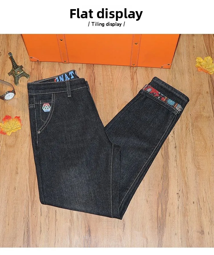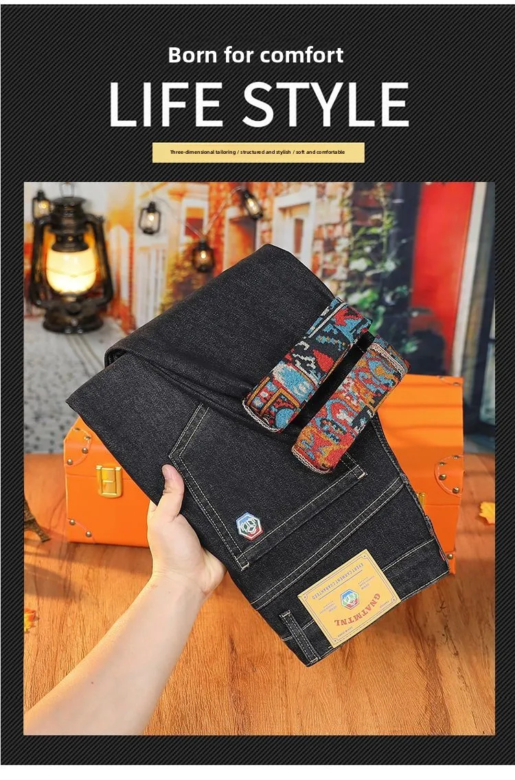 Autumn Winter Elastic Men’s Jeans Fashion Comfortable Baggy Straight Stretch Cotton Casual Denim
