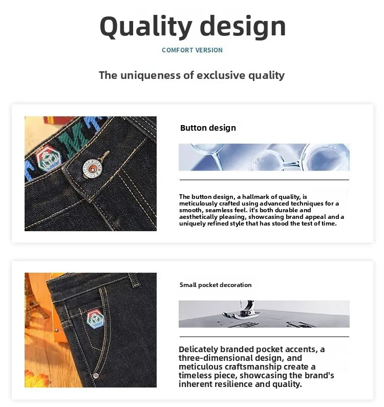 Men's Casual Loose Straight Leg Jeans Multi-Pocket Workwear Pants Fashionable Korean Brand Harlan Cuffed Trousers