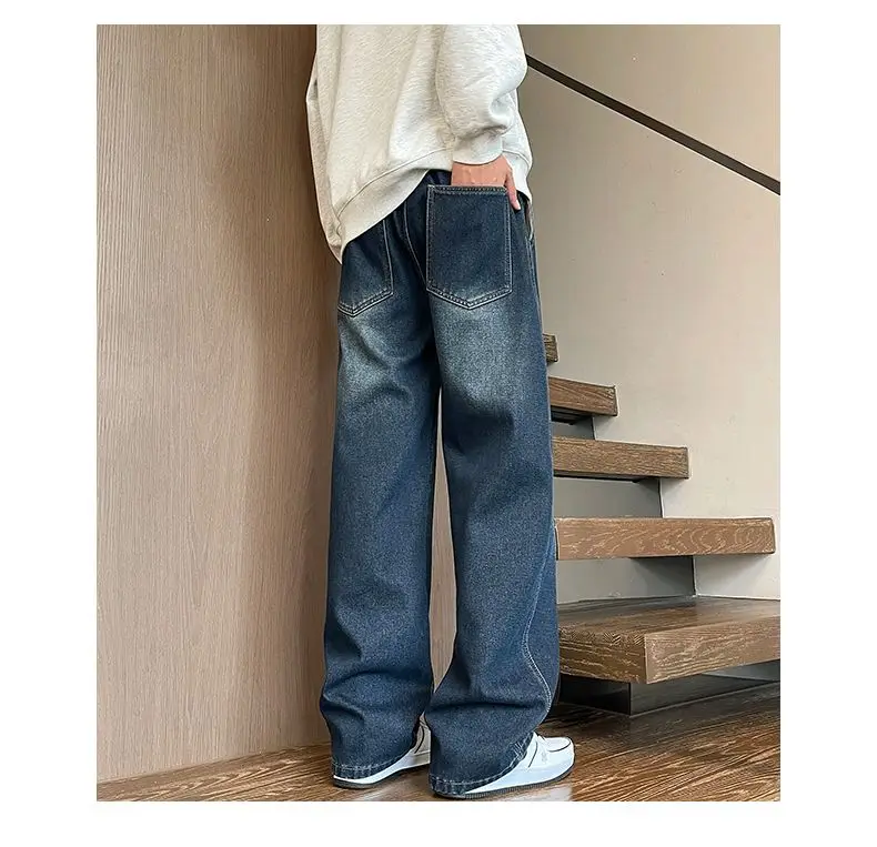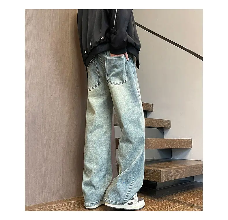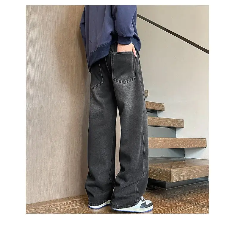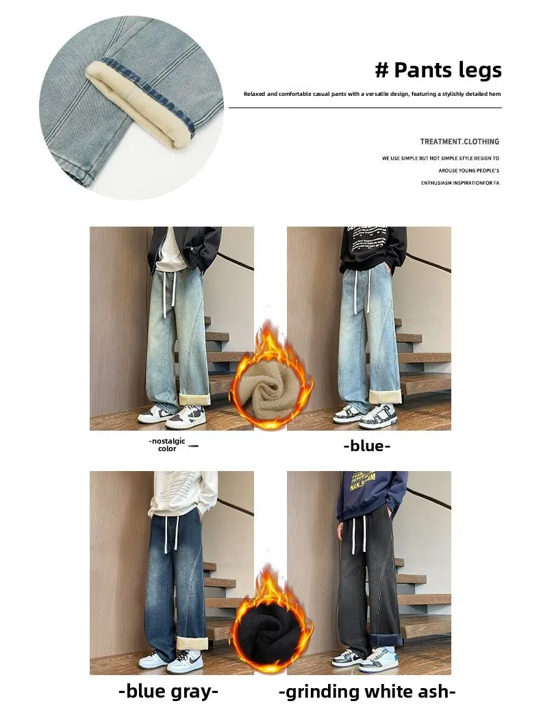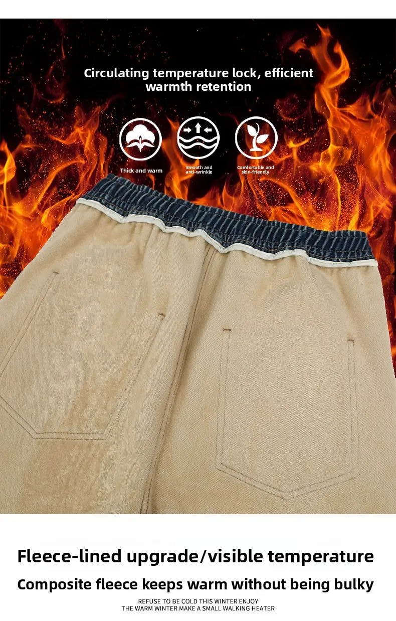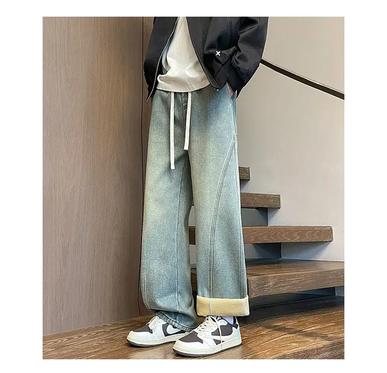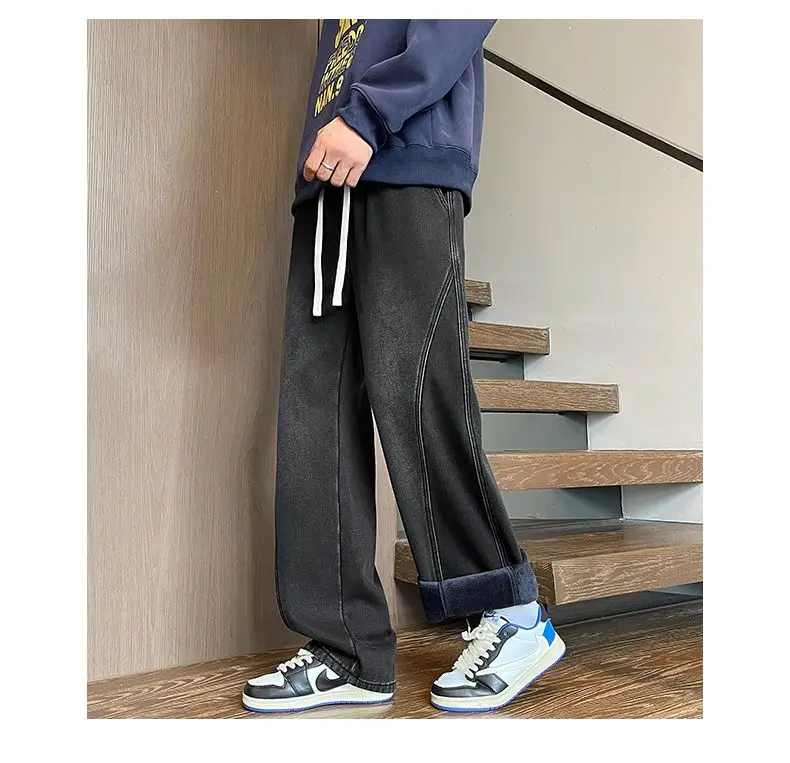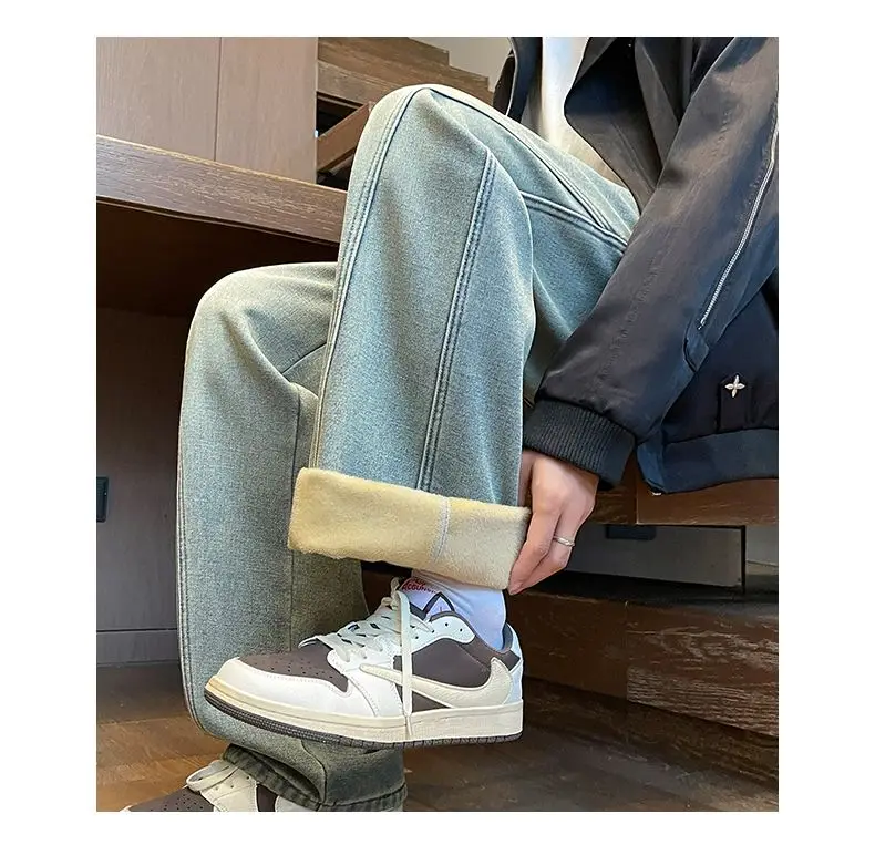 Autumn Winter Fleece New Men’s Thicken Jeans Micro Elastic Loose Straight Tube High Street Men’s