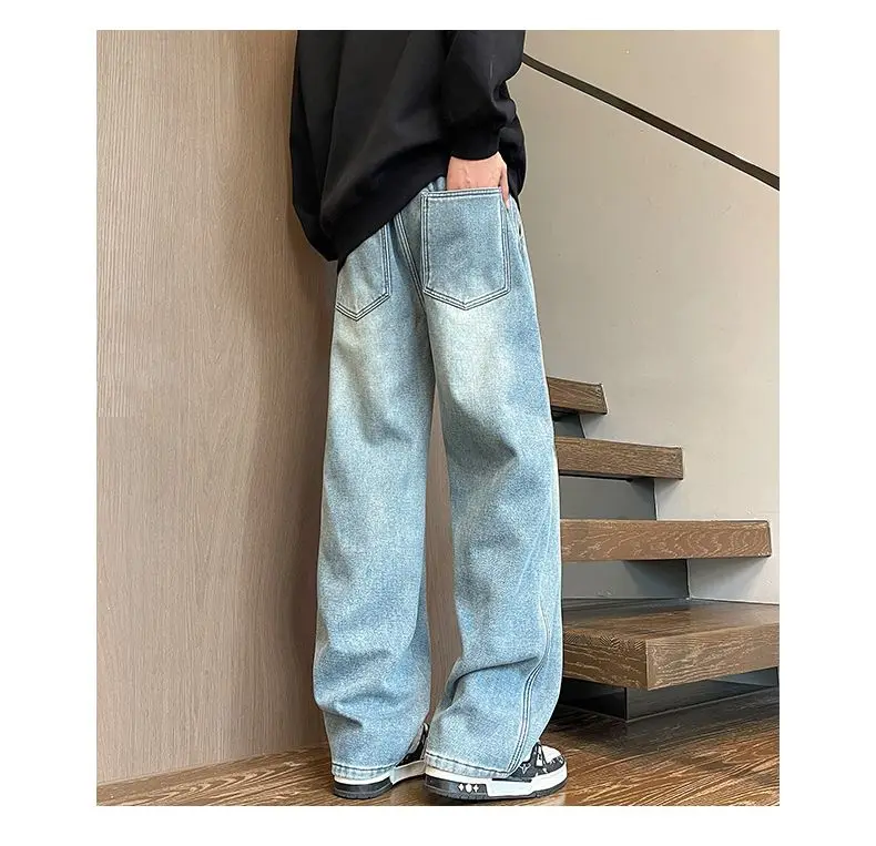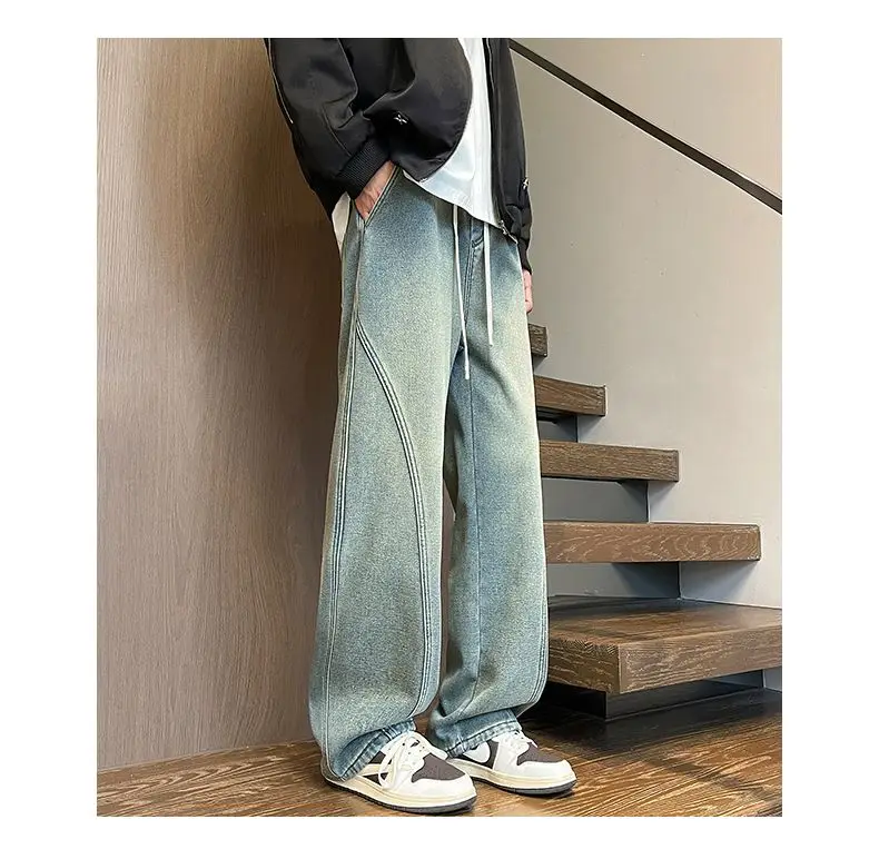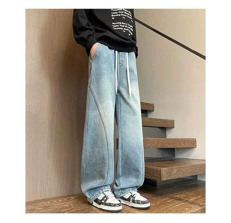 American High Street Style Men's Casual Pants Drapey Wide Leg Loose Fit Sports Trousers Large Size Knife Edge Design