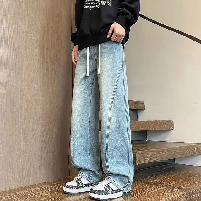 American High Street Style Men's Casual Pants Drapey Wide Leg Loose Fit Sports Trousers Large Size Knife Edge Design