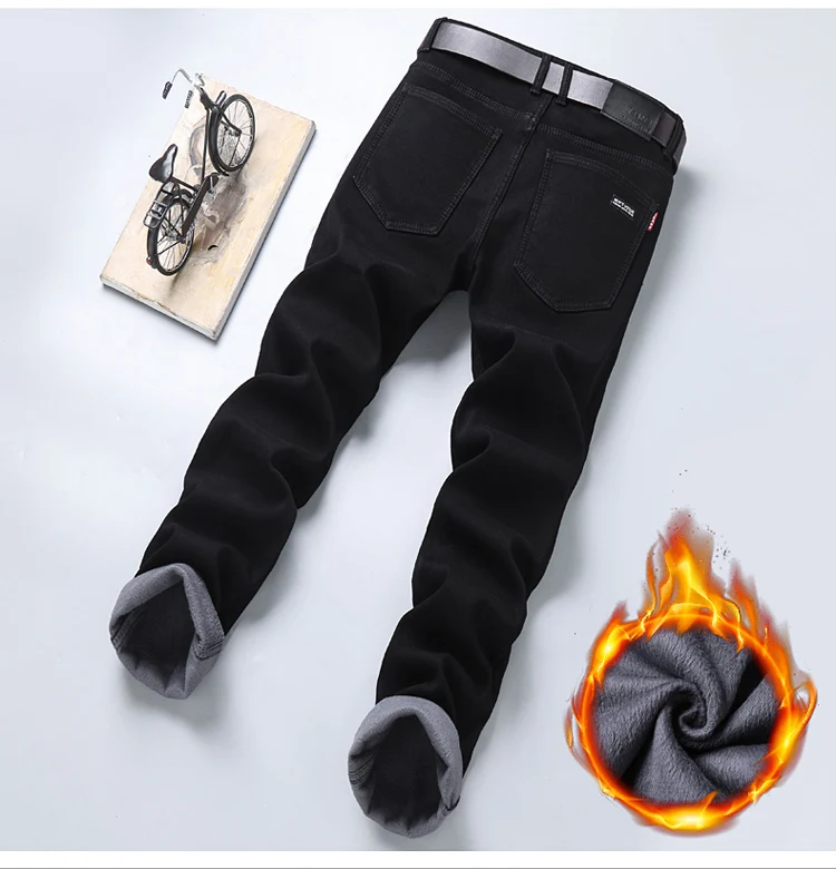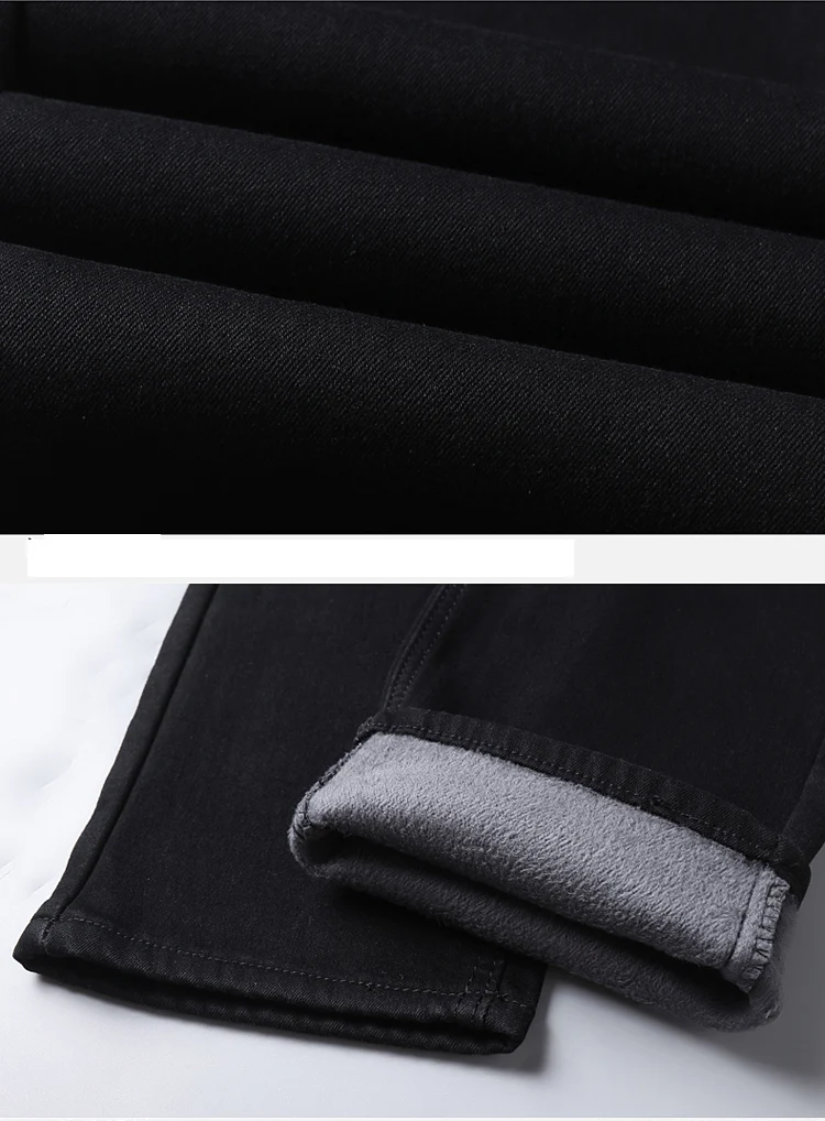Autumn Winter Fleece Stretch Jeans Black Fashion Slim Comfortable Cotton Straight Trousers Warm Male Brand Clothing Denim Pants