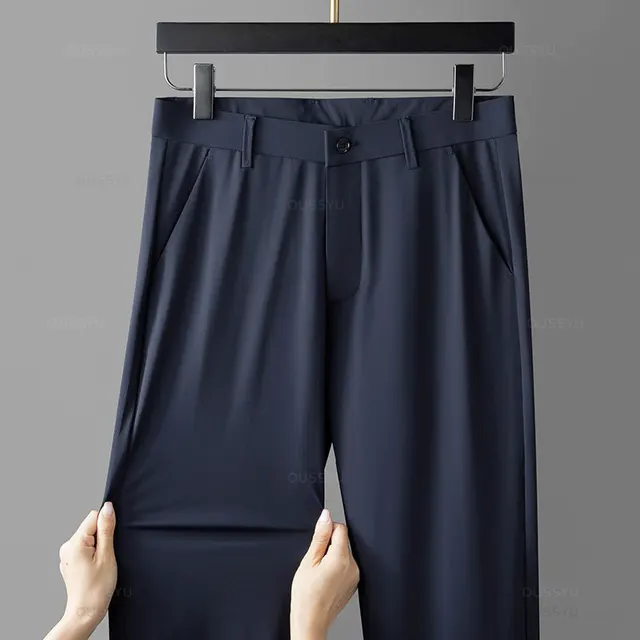 Mingyu Brand Autumn Winter Stretch Pants Men Thick Elastic Waist Business Straight Classic Solid Color Black Casual Trouser Male