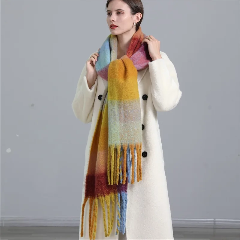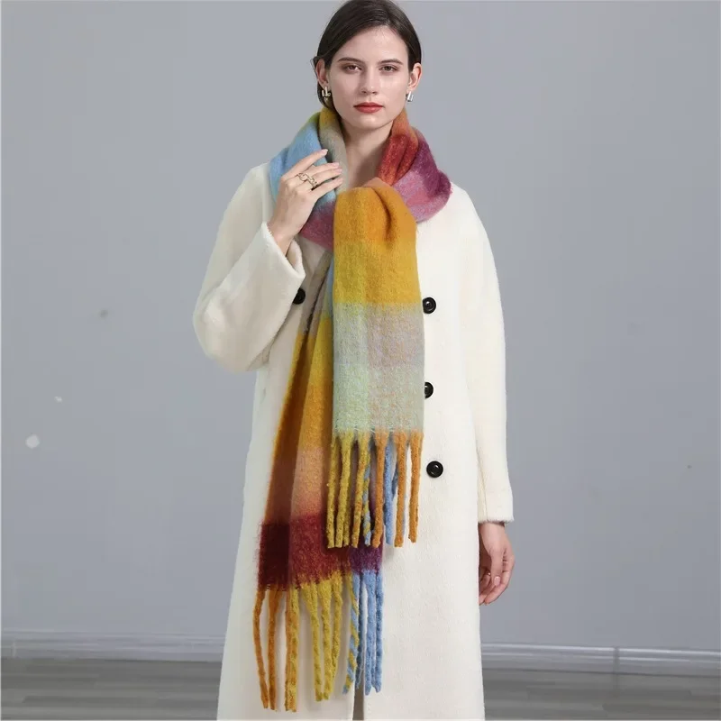 Autumn Winter Imitation Cashmere Plaid Scarf for Men Women Tassel Long Scarves Fashion Necklaces Shawl Intensification Warm Wrap
