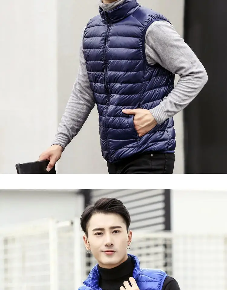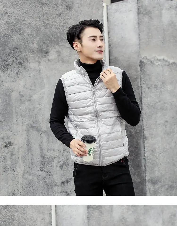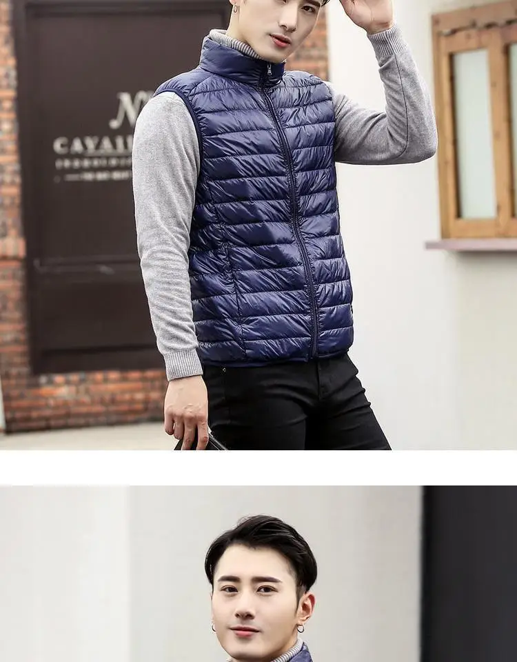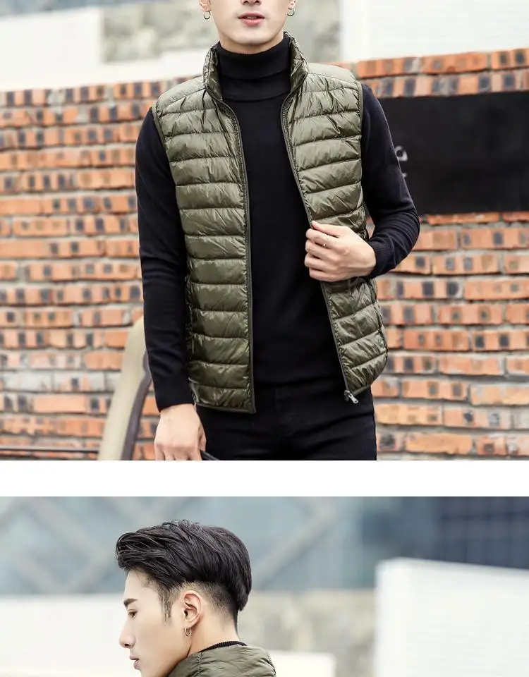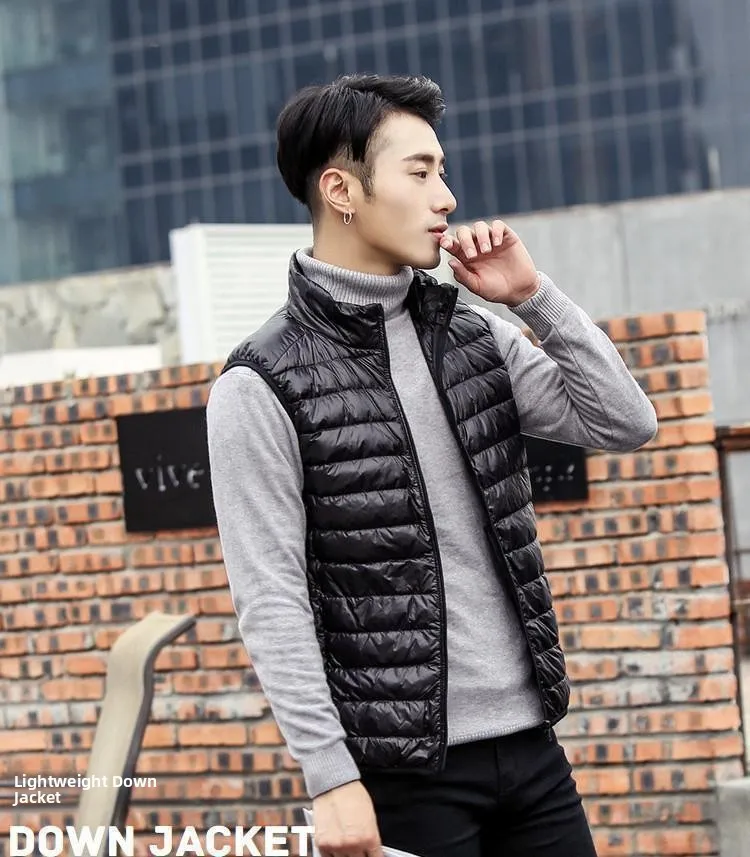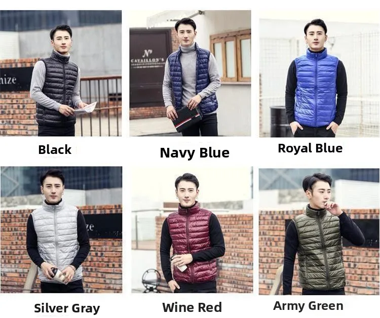 Autumn Winter Lightweight down Vest Men’s Stand Collar Vest Winter Wear Casual Outerwear Shoulder