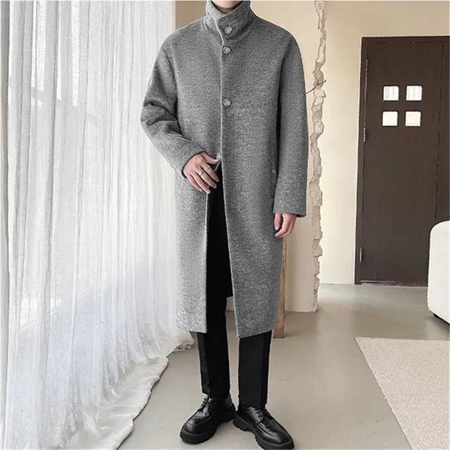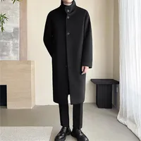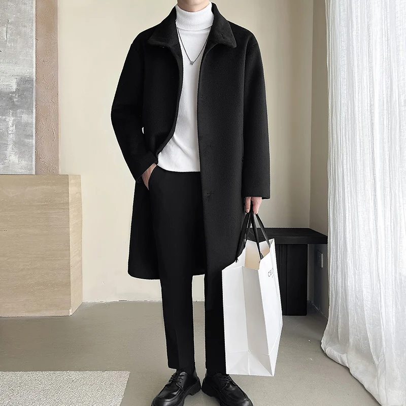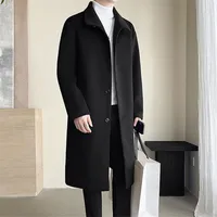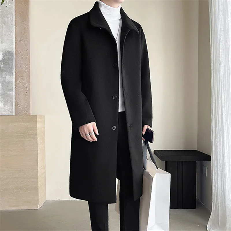 Autumn Winter Male Wool Blend Coats Fashion Long Business Casual Woolen Outwear Men Turn Down Collar