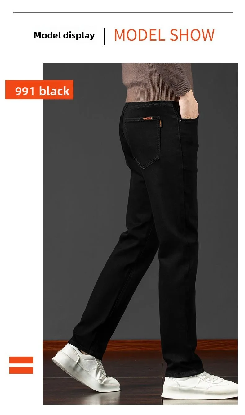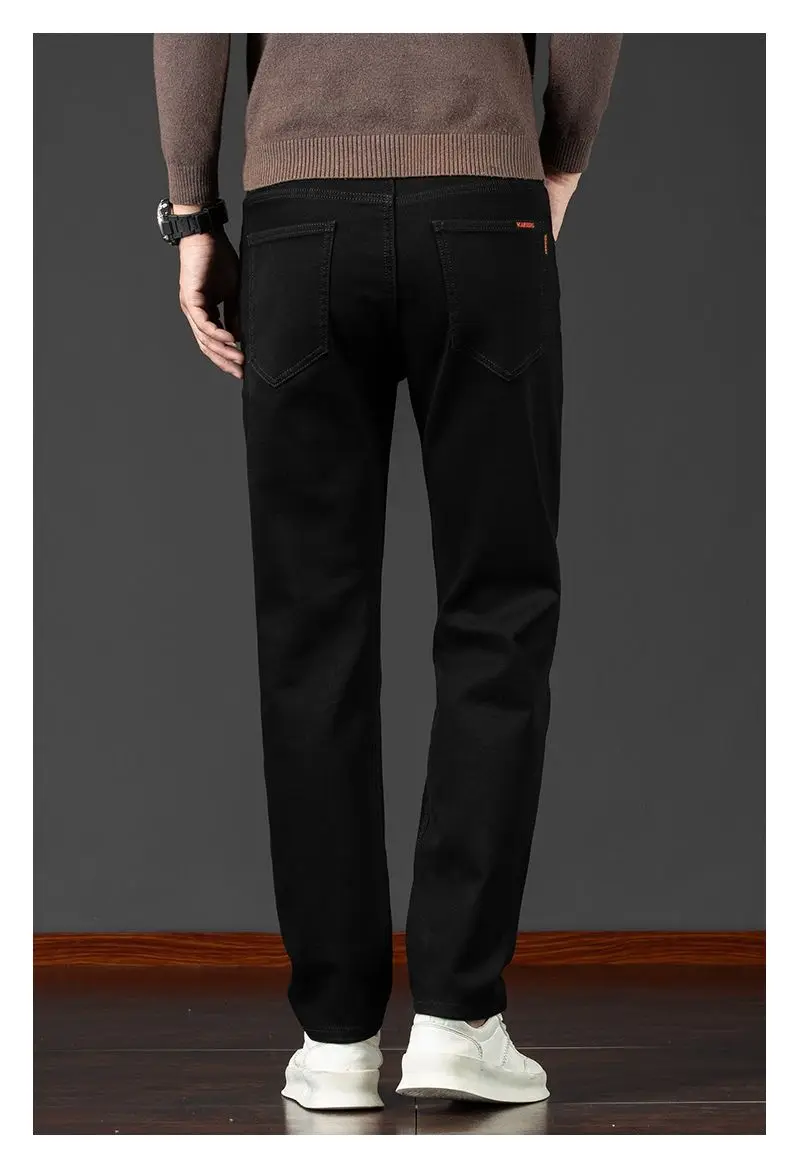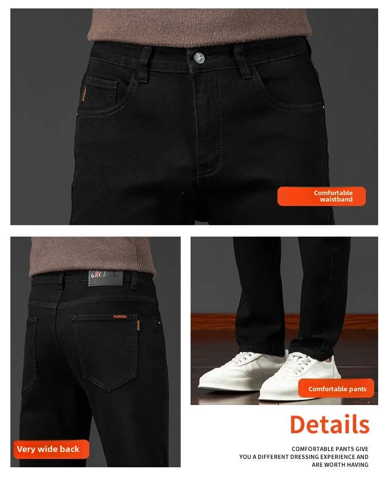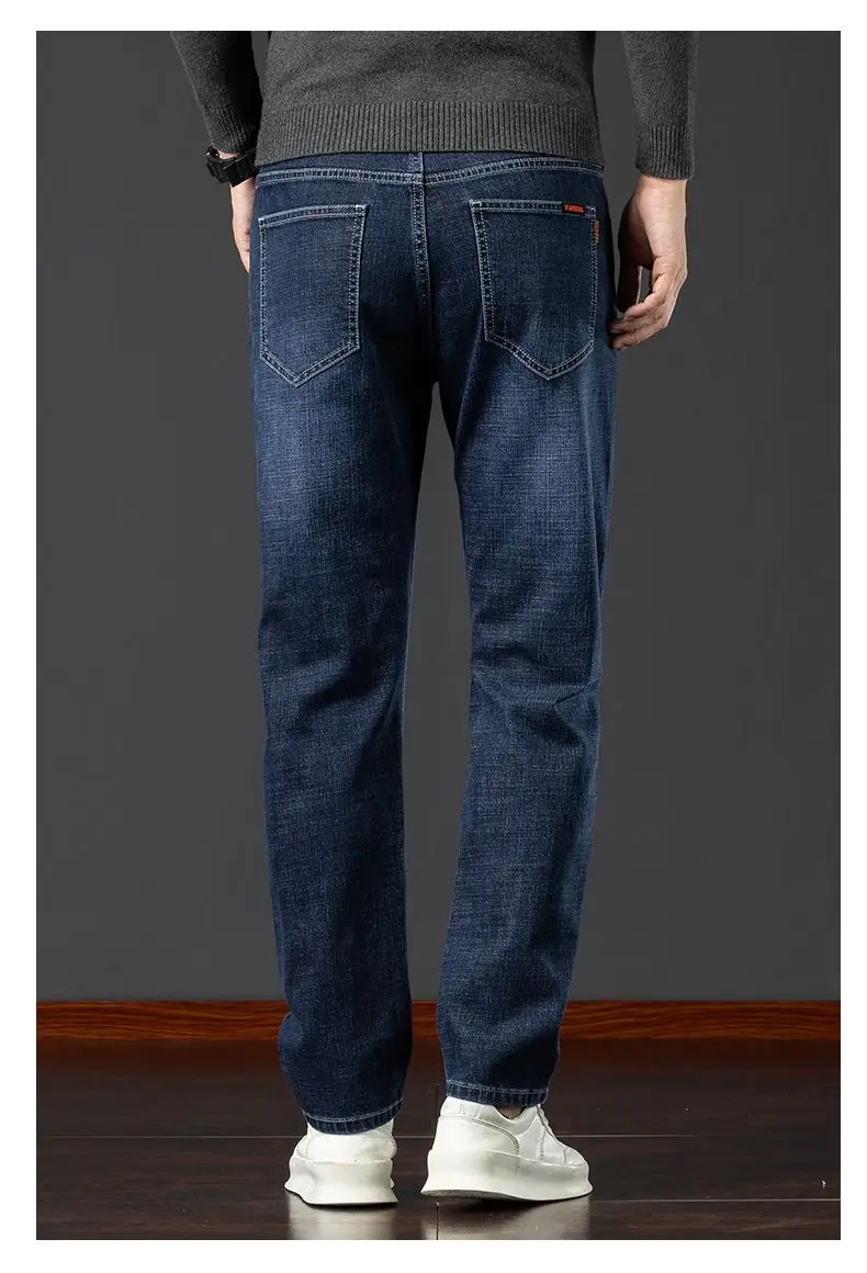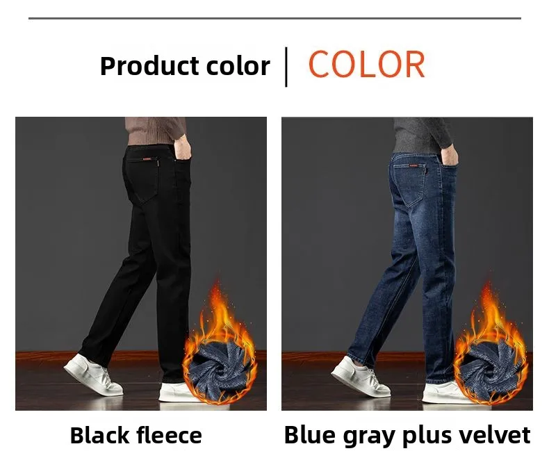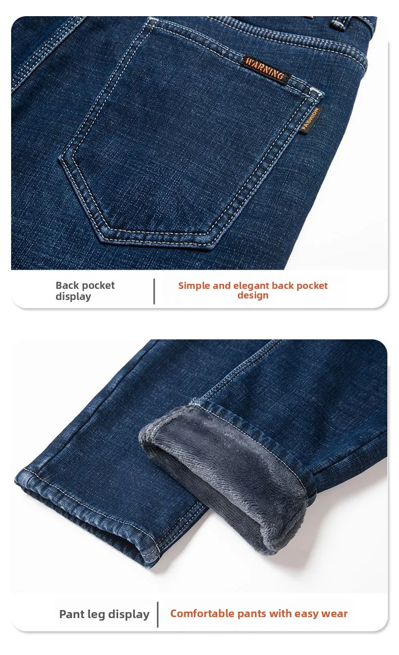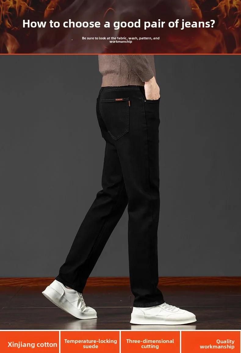 Autumn Winter Men Plush Thicken Fleece Jeans Casual Slimming Pants Men’s Windproof Cotton Versatile