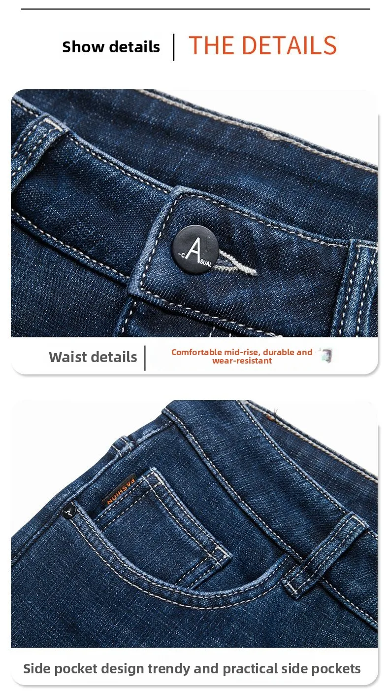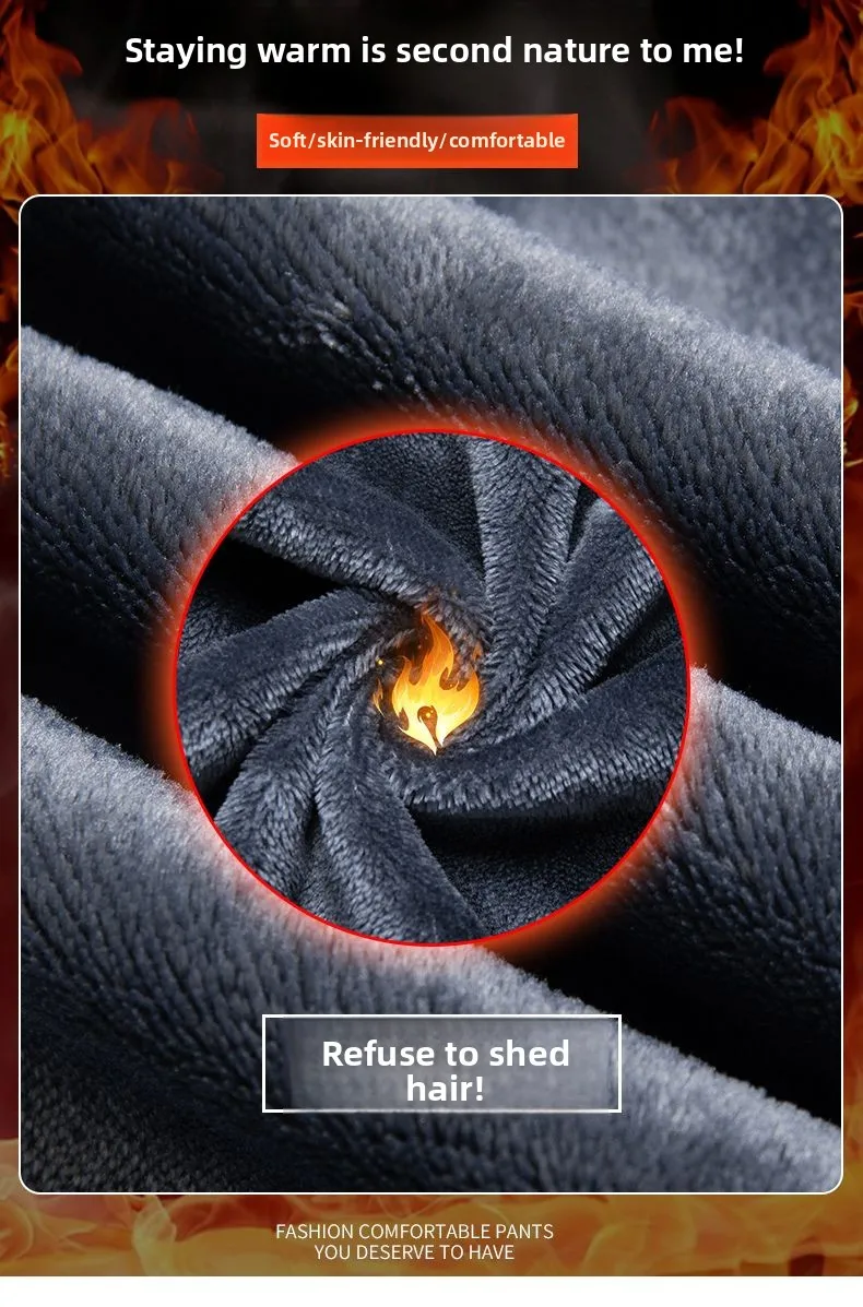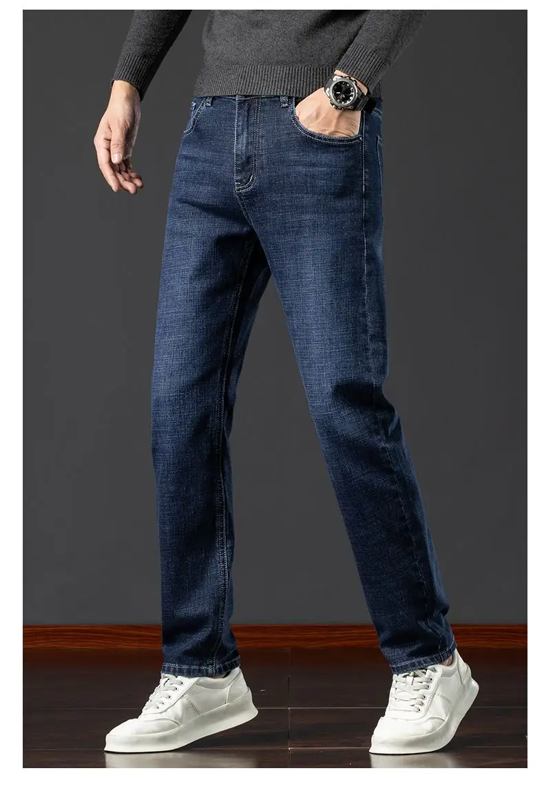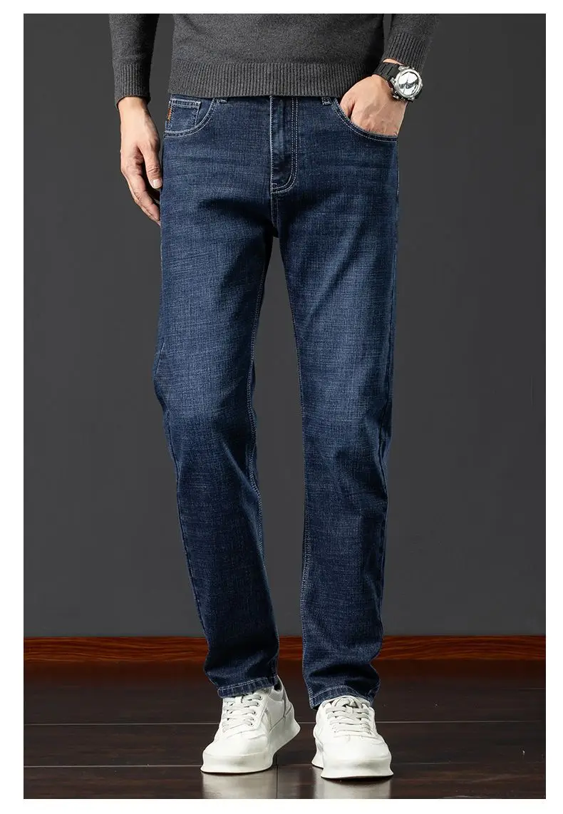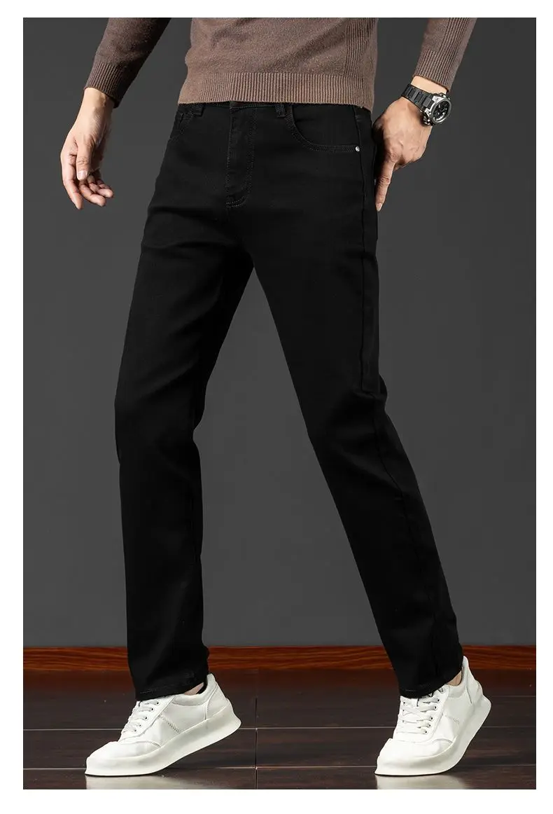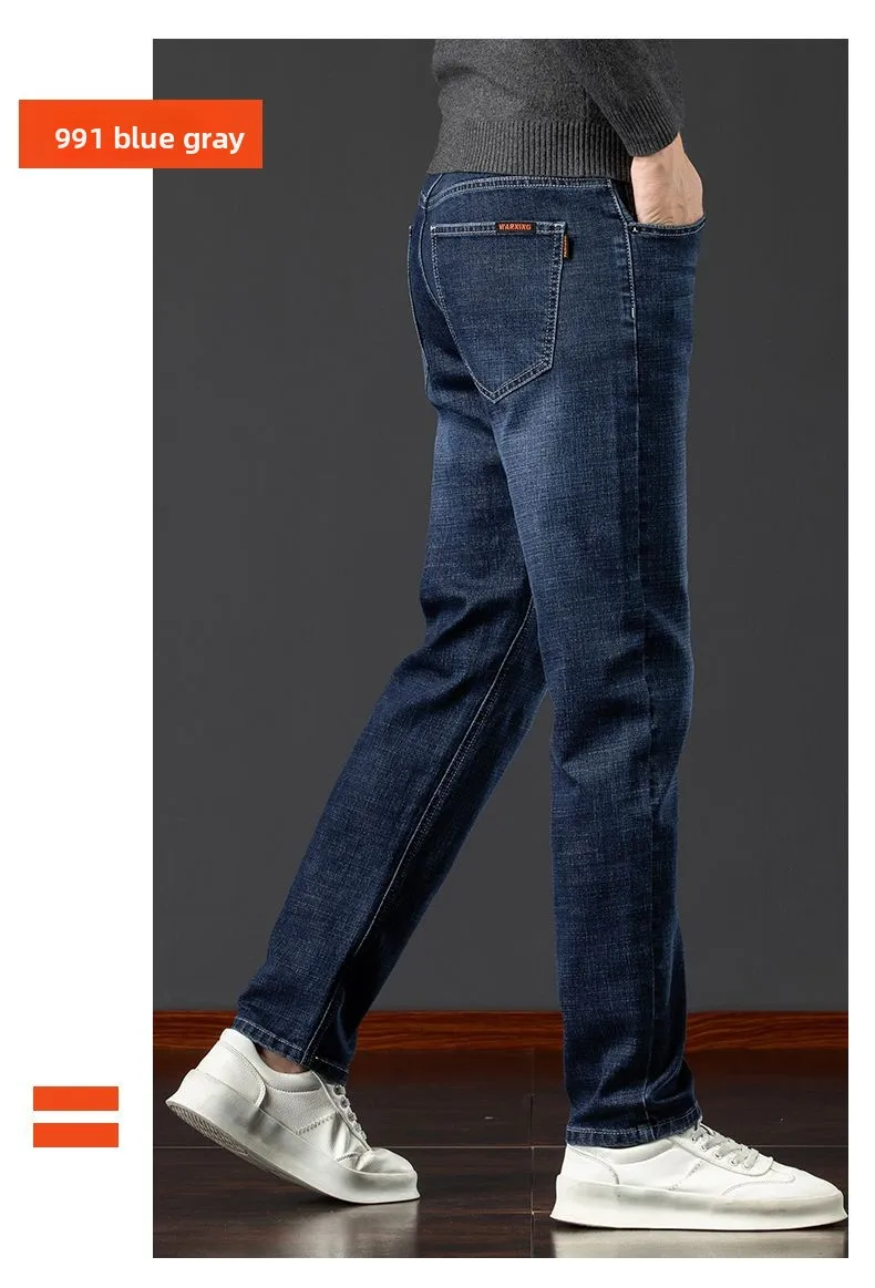 Autumn Winter Men Plush Thicken Fleece Jeans Casual Slimming Pants Men’s Windproof Cotton Versatile