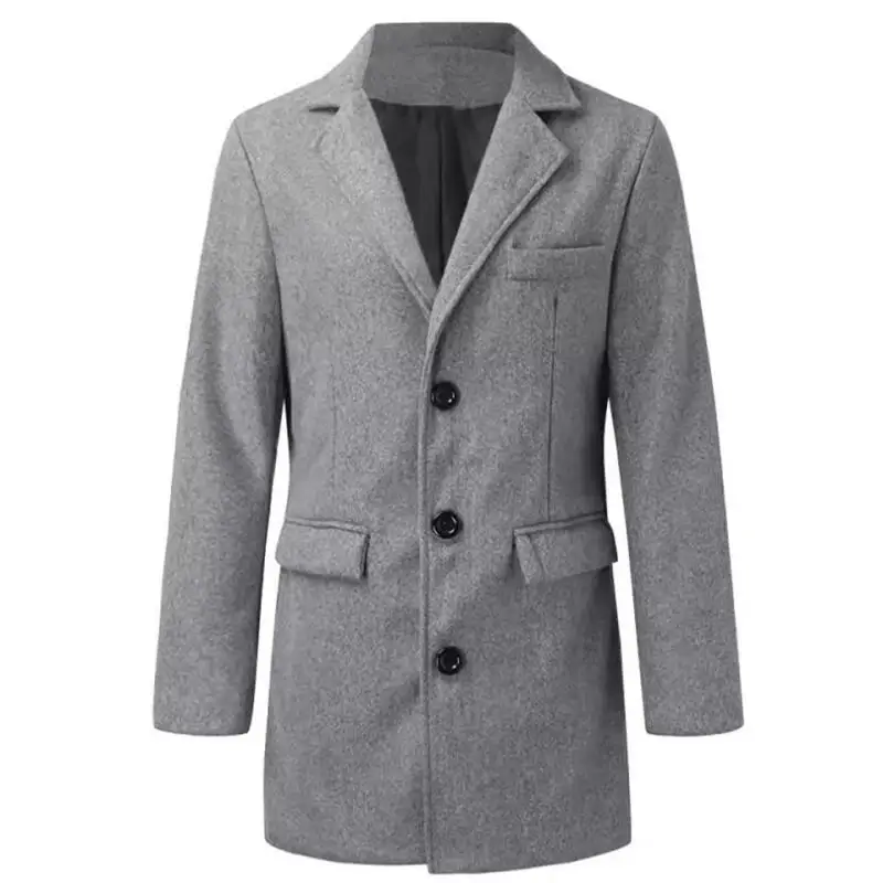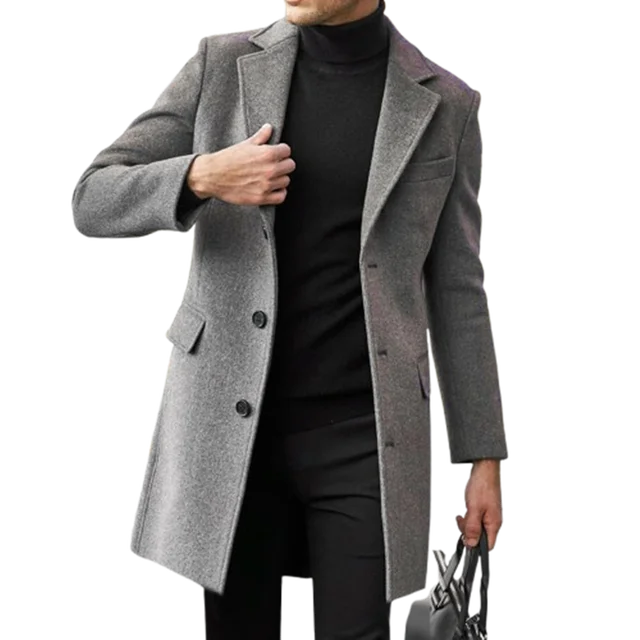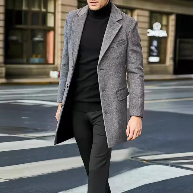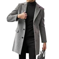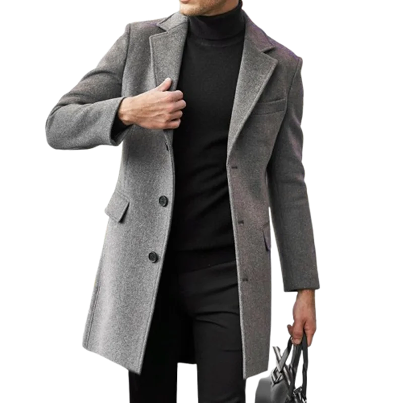 2024 New Autumn Winter Men's Solid Woolen Coats Classic Turn-down Collar Wool Blends Button Jackets Casual Slim Long Windbreaker