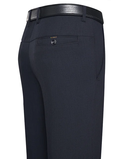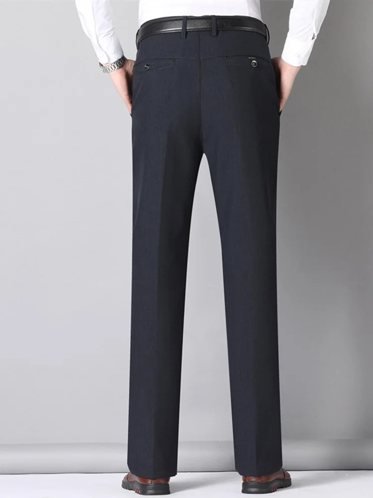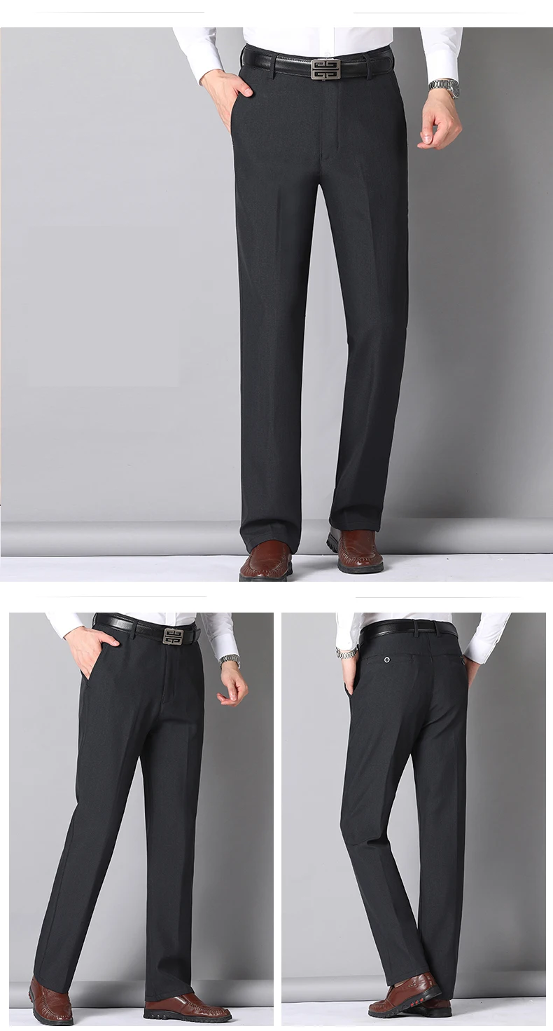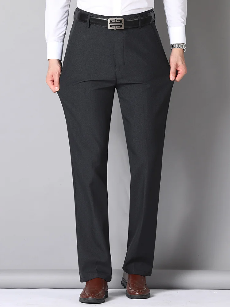 Autumn Winter Men’s Business Pants Loose Straight Formal Classic Solid Color Work High Waist Black