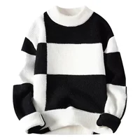 Autumn Winter Men's Casual Knitted Half High Collar Base Shirt Teenage Trendy Color Block Sweater Versatile Leisure Top