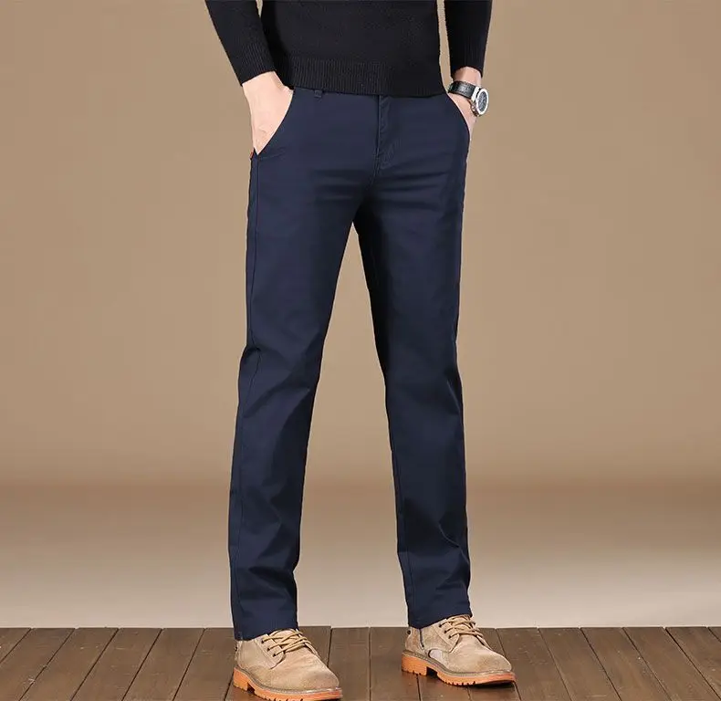 This men’s casual pants feature a business casual style, perfect for office wear or formal occasions. The straight cut and mid-waist design enhance the professional look.