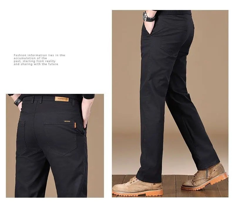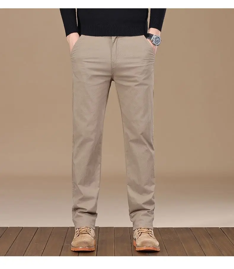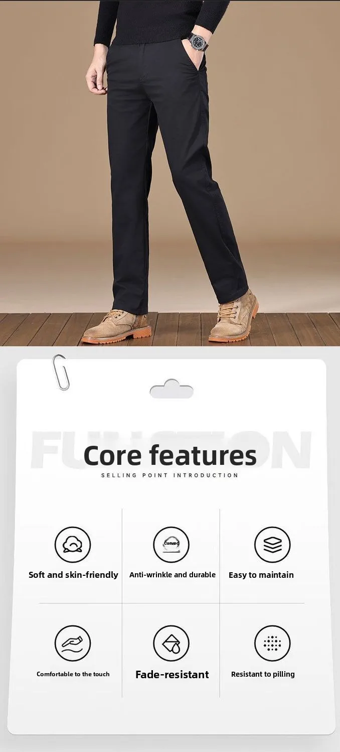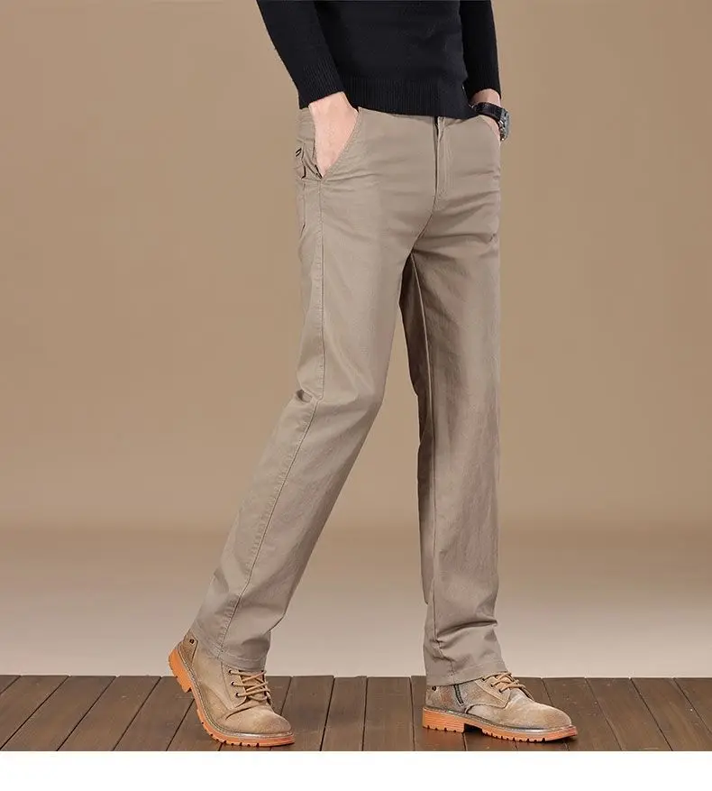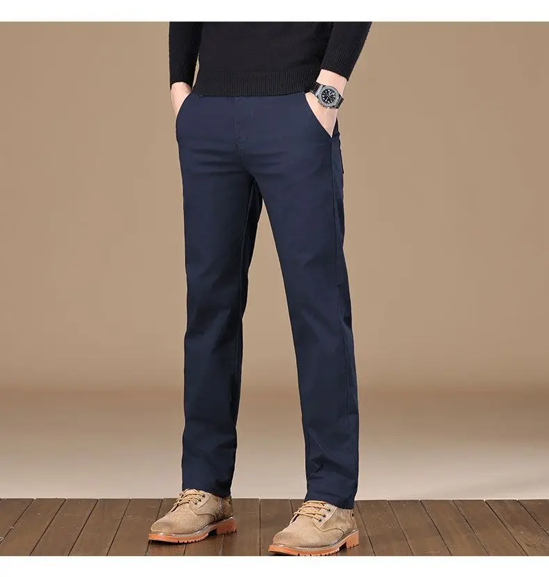 Autumn Winter Men's Casual Loose Fit Straight Leg Pants Busin Casual Trousers All-Match Large Size Comfortable Cotton