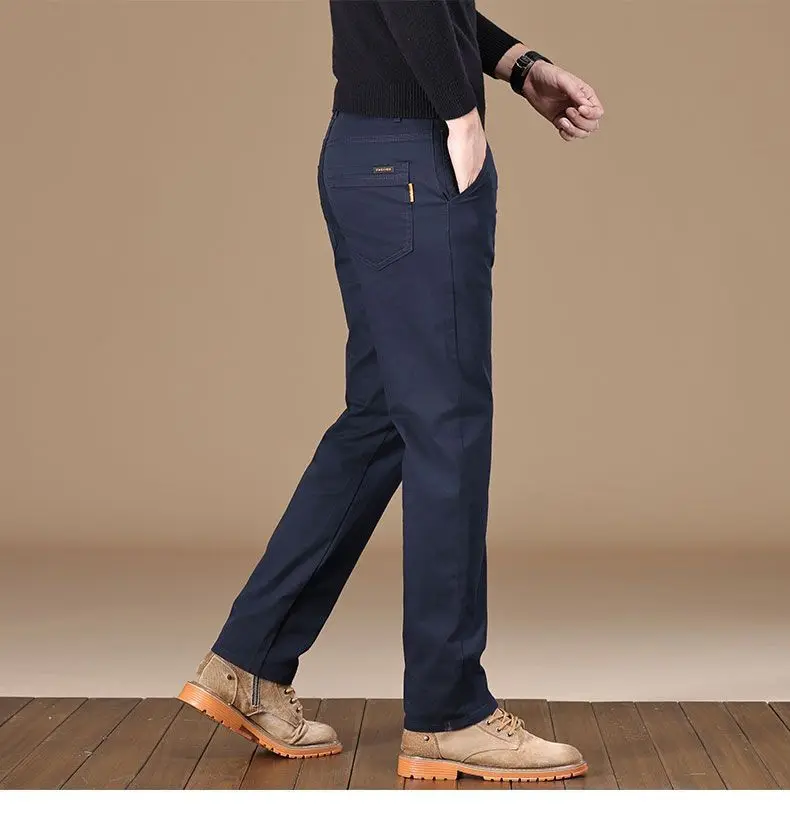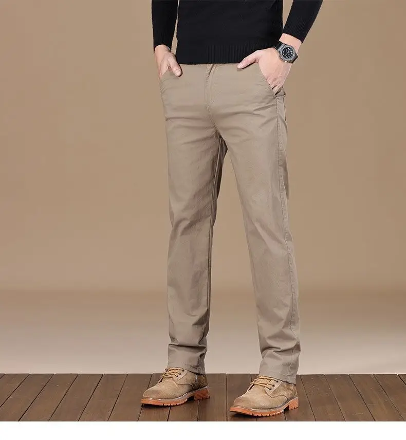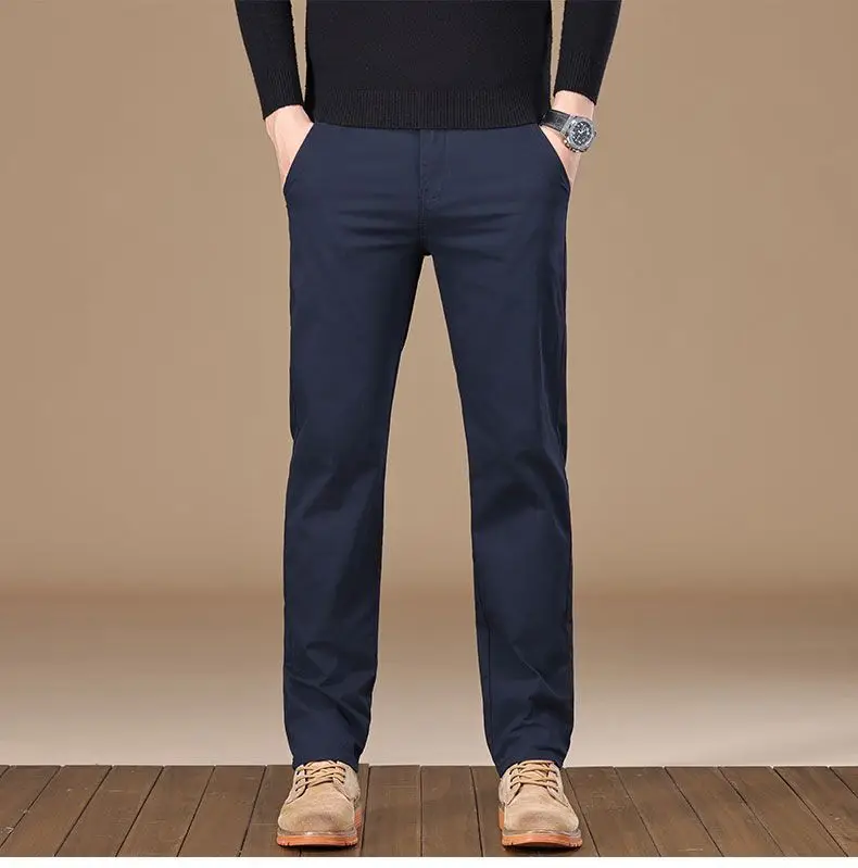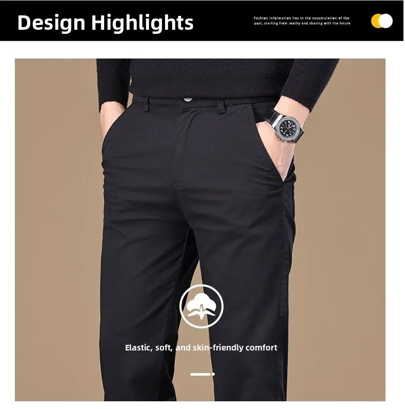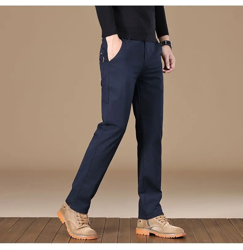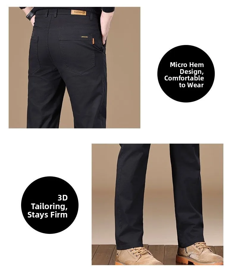 Autumn Winter Men's Casual Loose Fit Straight Leg Pants Busin Casual Trousers All-Match Large Size Comfortable Cotton