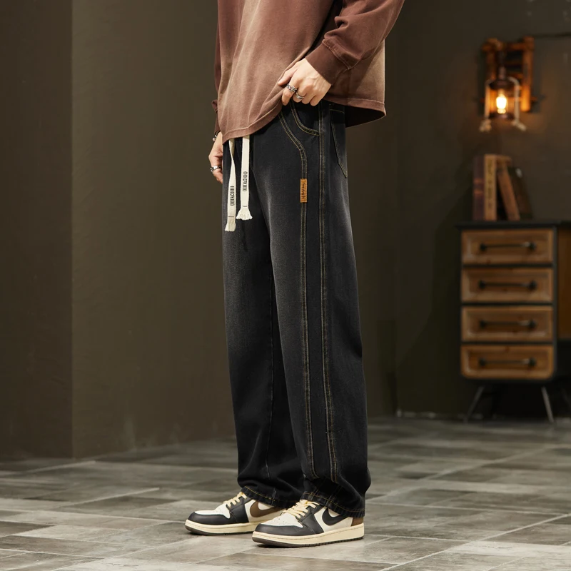 Pineapple Texture New Fabric Men's Corduroy Casual Pants Thick Elastic Waist Fashion Straight Loose Wide Leg Korea Trousers Male