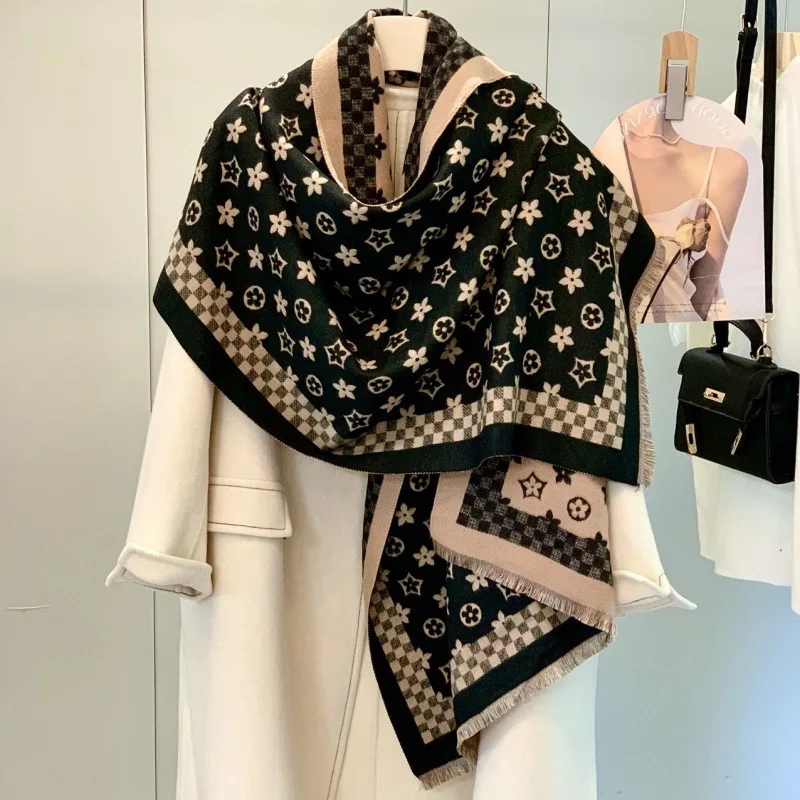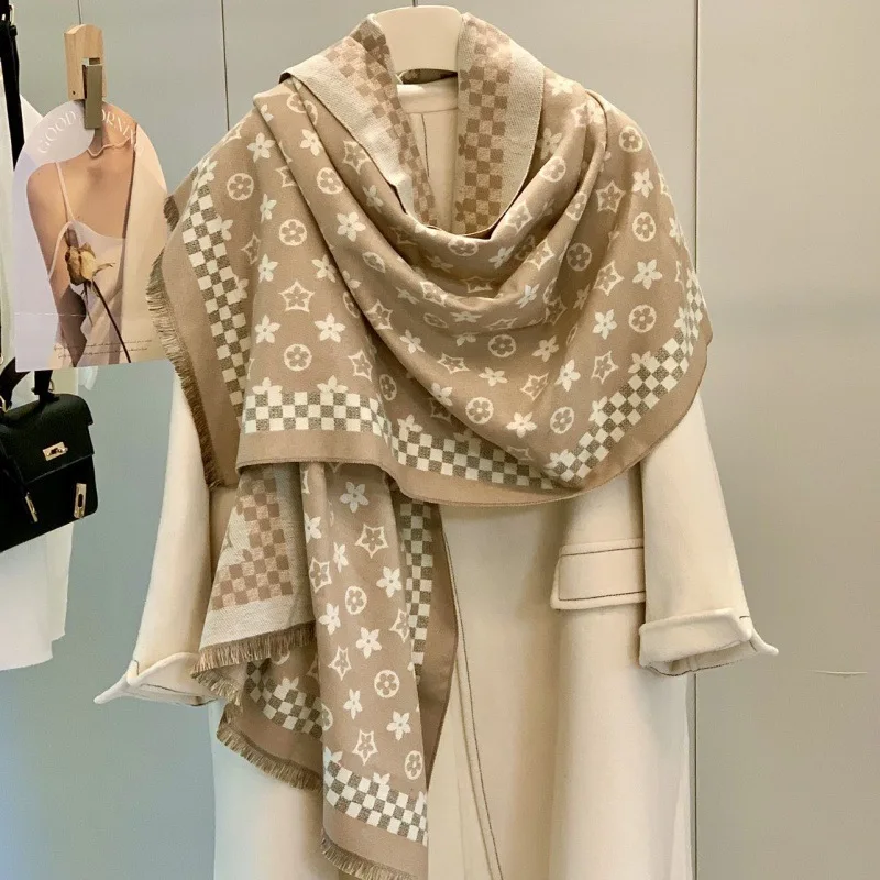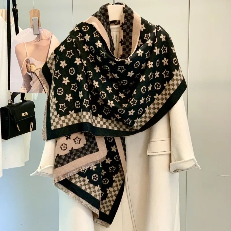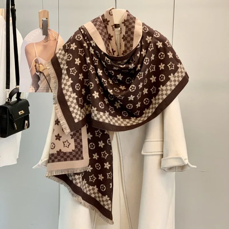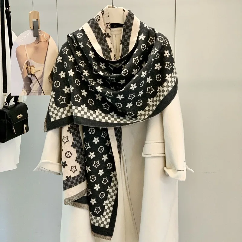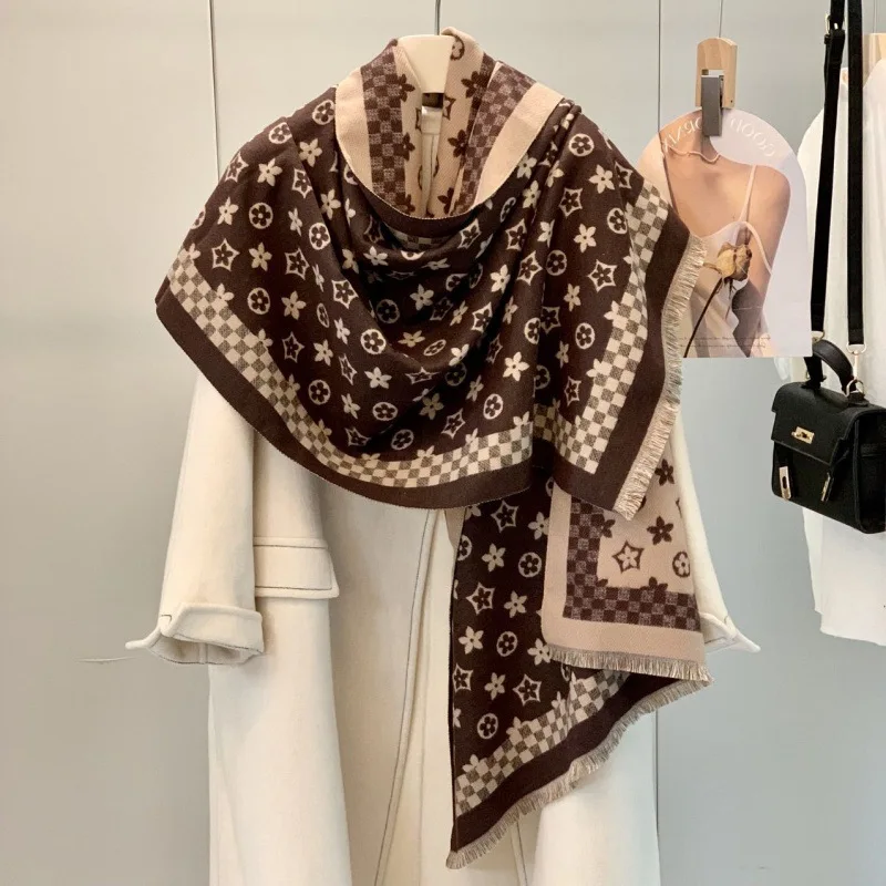 Autumn Winter Thickened Faux Cashmere Scarf Business Style Long Double-Sided Versatile Letter Print Neck Warmer Elegant Fashi...