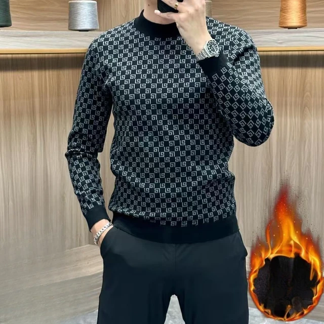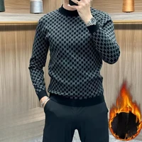 Autumn Winter New Koreon Fashion Fleece Thicken Warm T-Shirt Men Clothing O-Neck Long Sleeve Casual Pullover