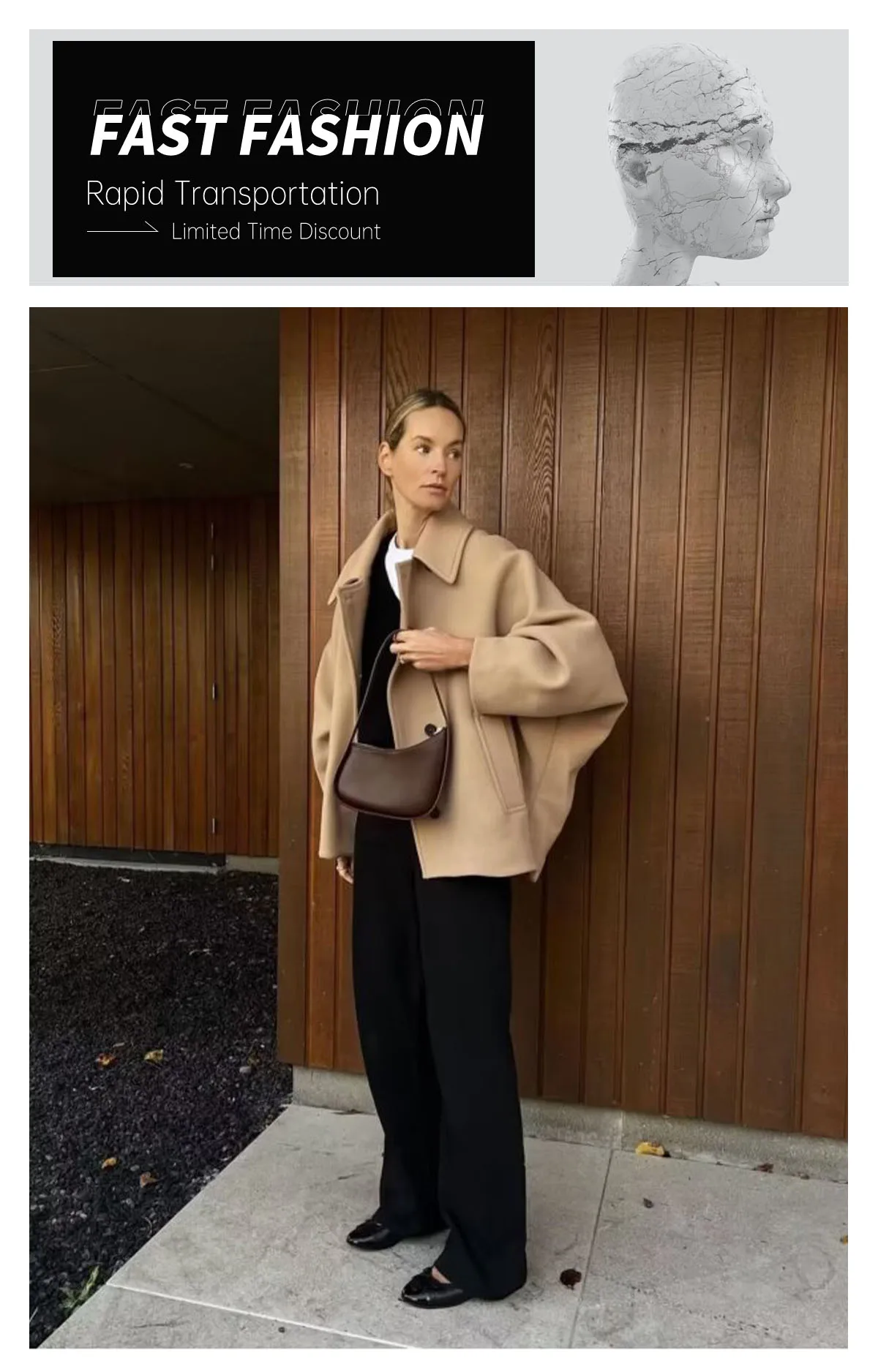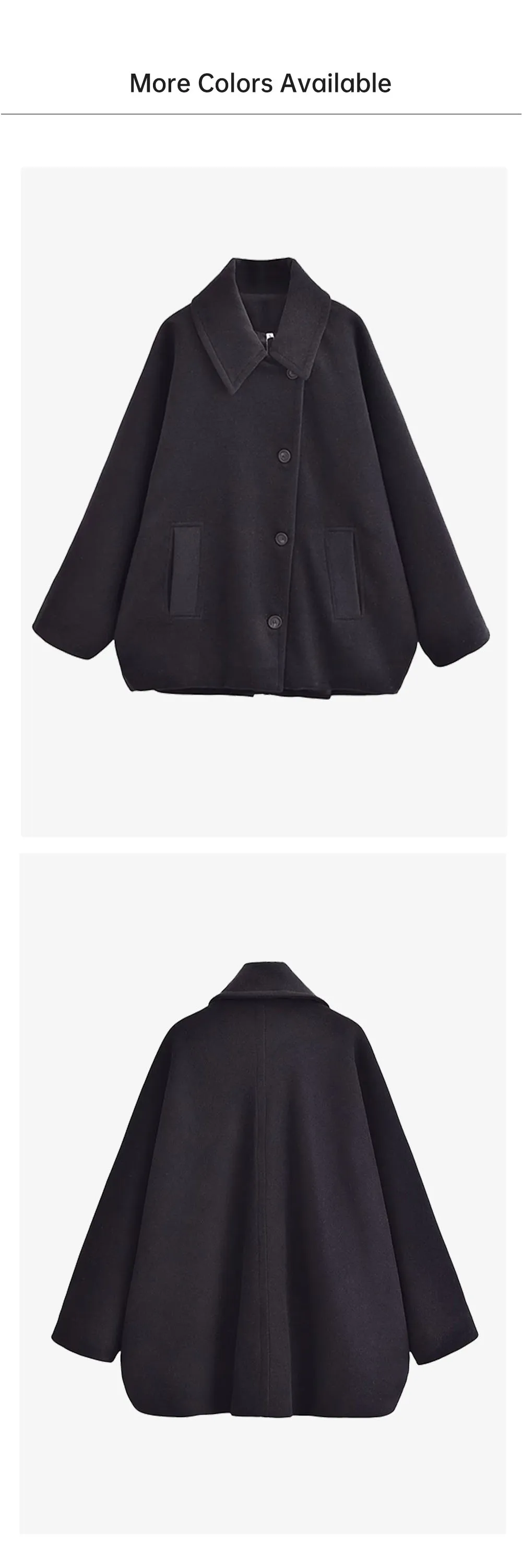 Autumn/Winter New Product Women’s Fashion Casual Loose Lapel Bat Sleeves Woolen Cloak Coat