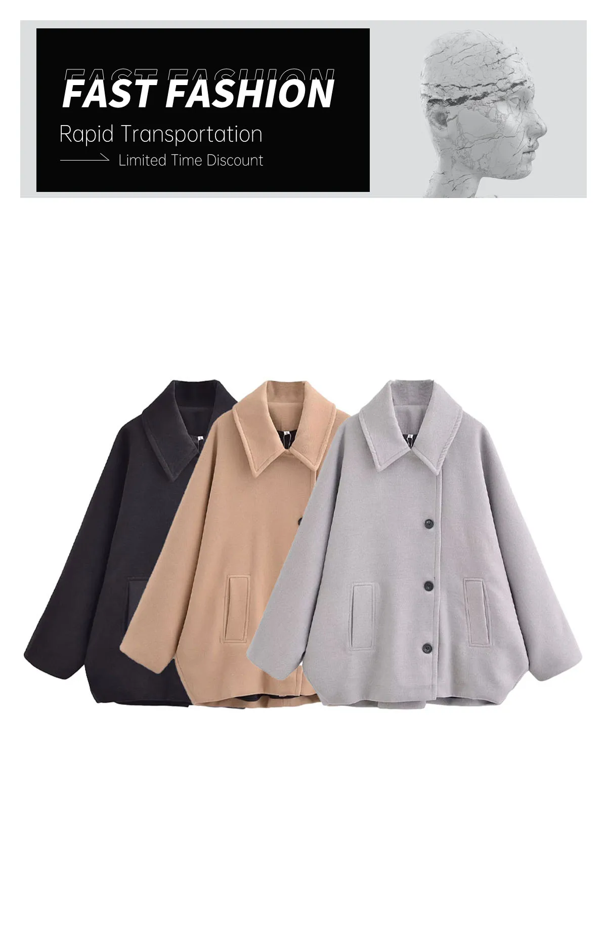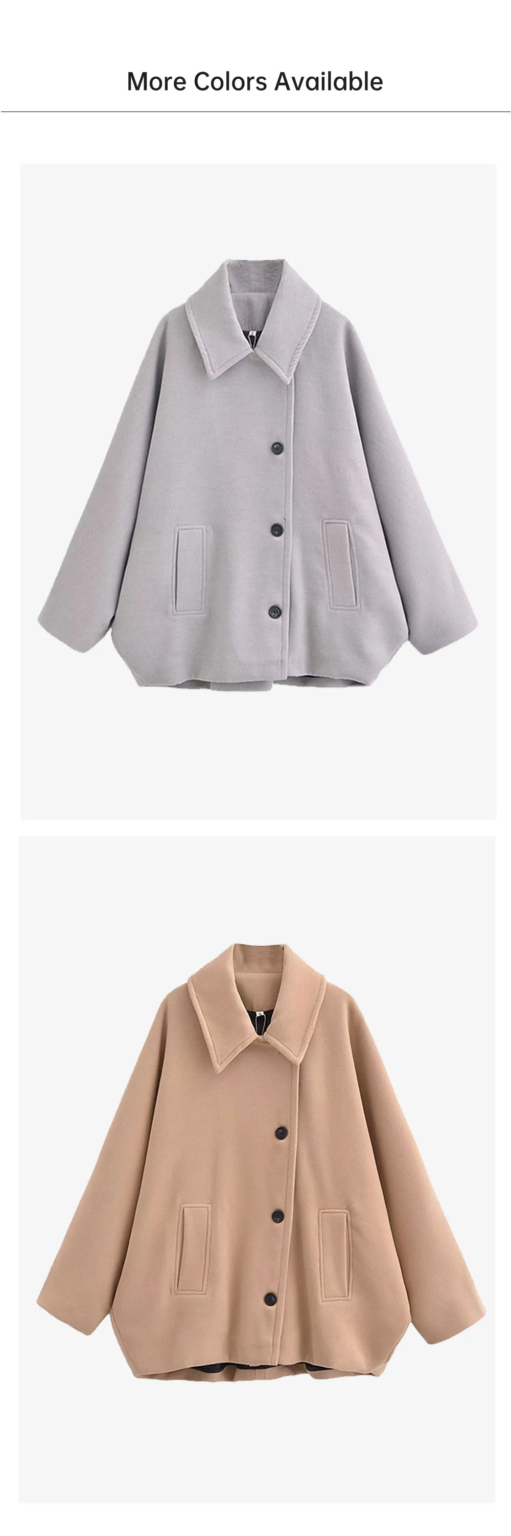 Be the first to review “Autumn/Winter New Product Women’s Fashion Casual Loose Lapel Bat Sleeves Woolen Cloak Coat”