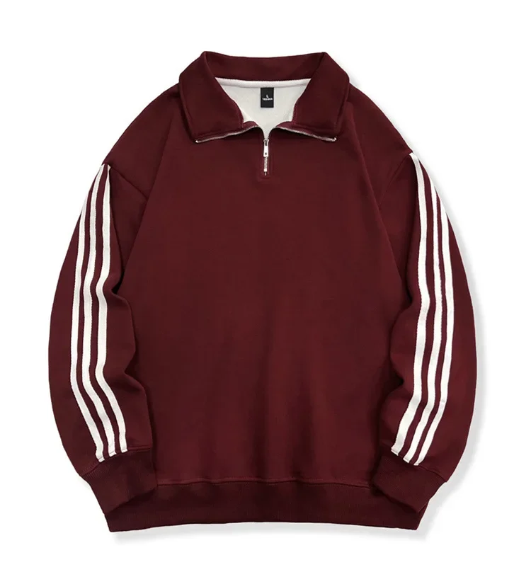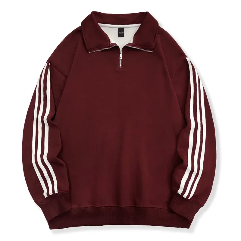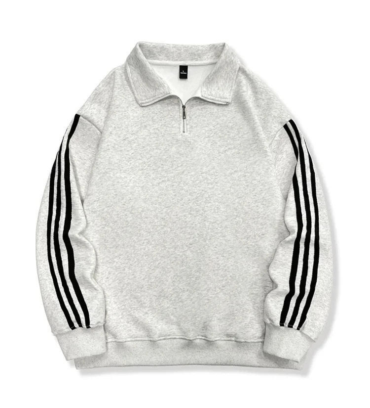 Autumn Winter New Style Thin Cotton Milk Silk Polo Collar Side Stripe Sweatshirt Unisex Lightweight Comfortable Hoodie
