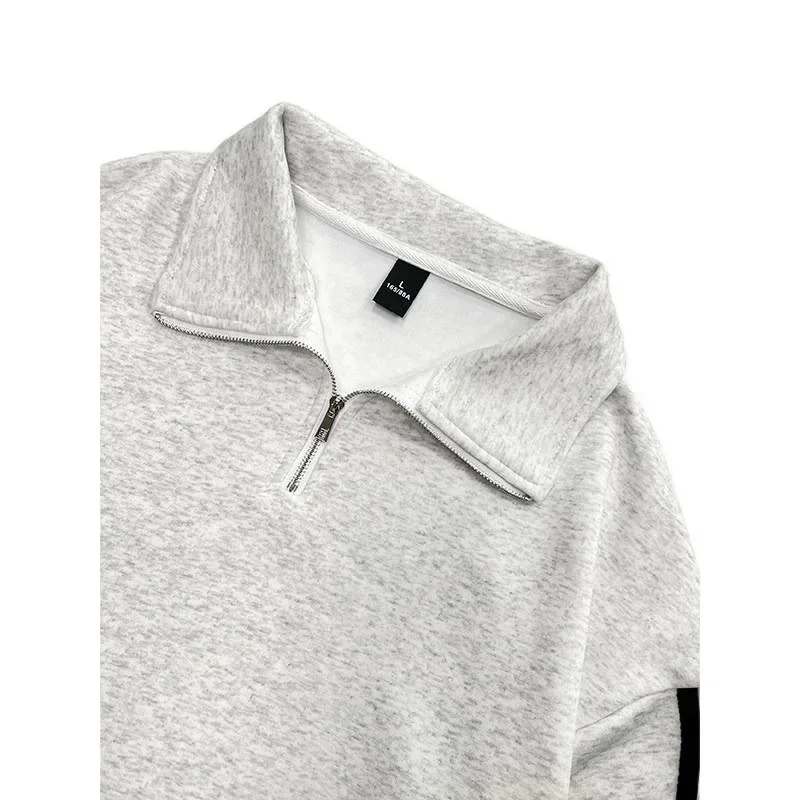 Autumn Winter New Style Thin Cotton Milk Silk Polo Collar Side Stripe Sweatshirt Unisex Lightweight Comfortable