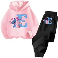 Autumn Winter Stitch Disney Long Sleeve Boys Girls Children's Set Casual Fashion Cartoon Letter Hoodies Set Pant Suit Tracksuits