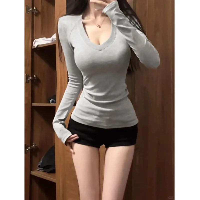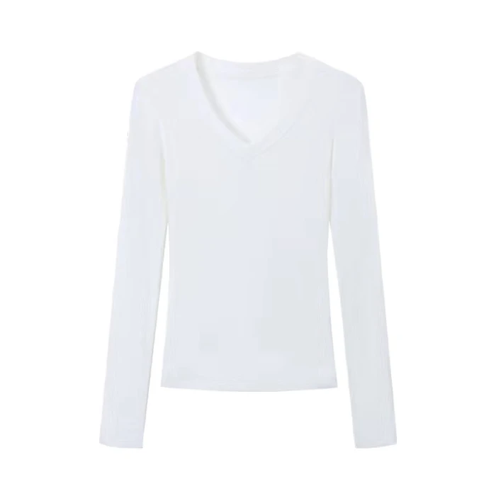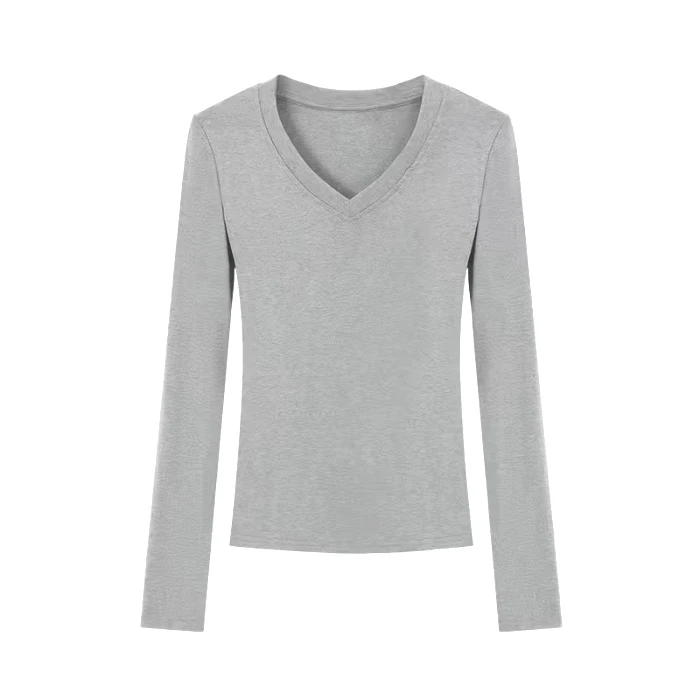 With its V-neck and long sleeves, this T-shirt can be easily paired with various outfits, making it a versatile addition to your wardrobe.