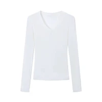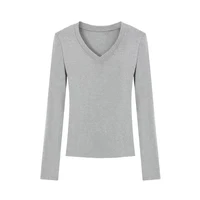 With its V-neck and long sleeves, this T-shirt can be easily paired with various outfits, making it a versatile addition to your wardrobe.