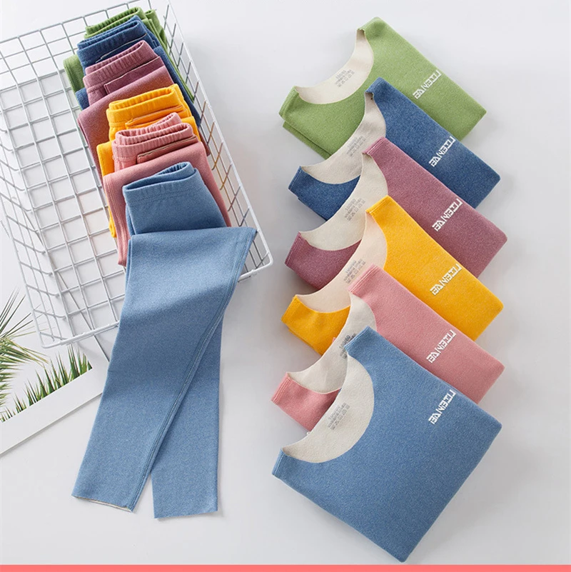 Autumn Winter Thermal Underwear Suit Girls Clothing Sets Boys Pajama Sets Baby No Trace Warm Sleepwear Candy Colors Kids Clothes