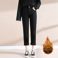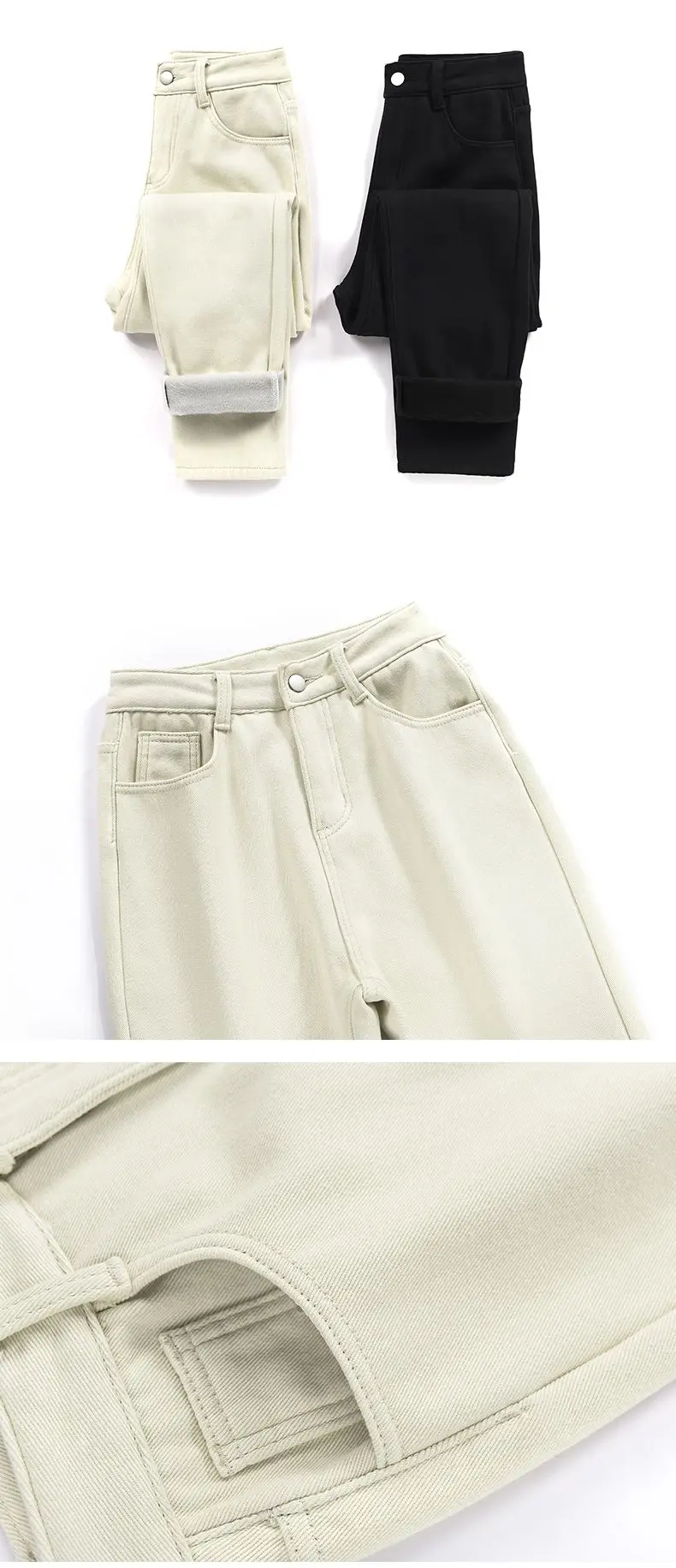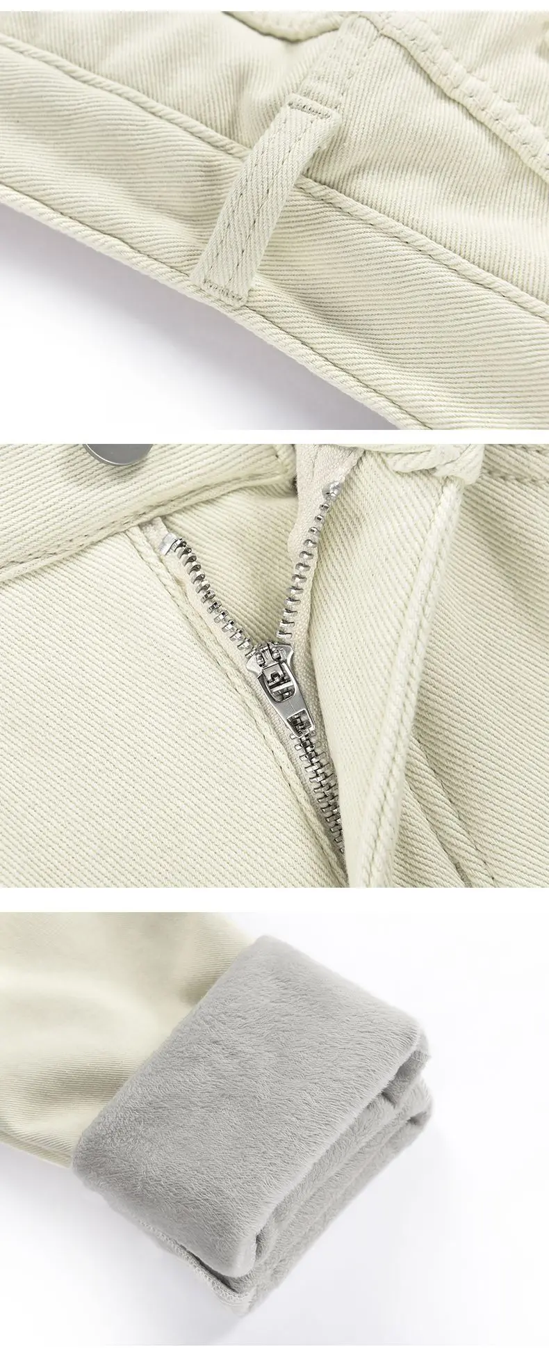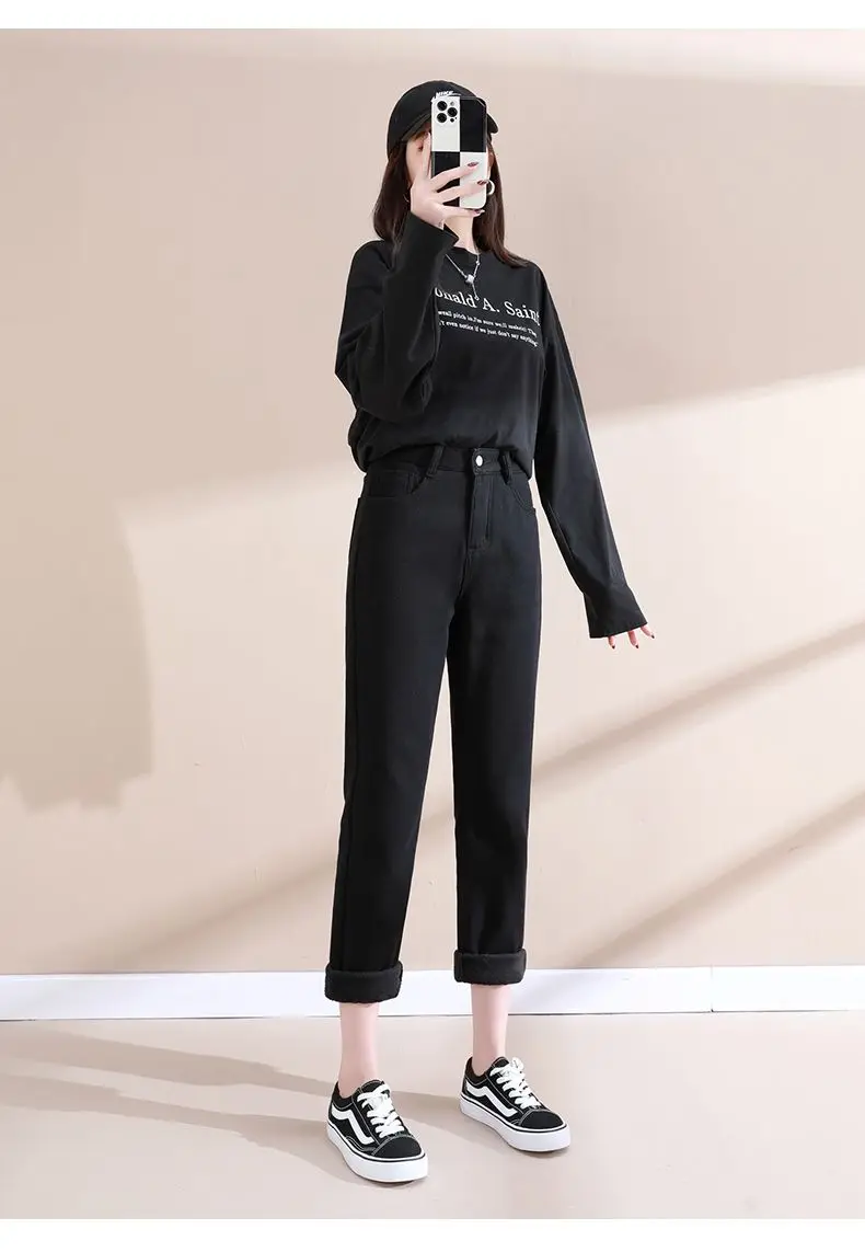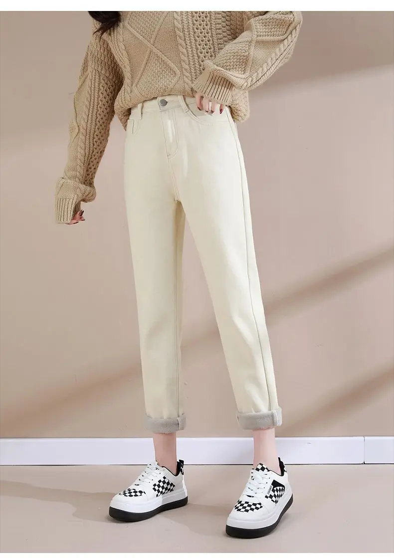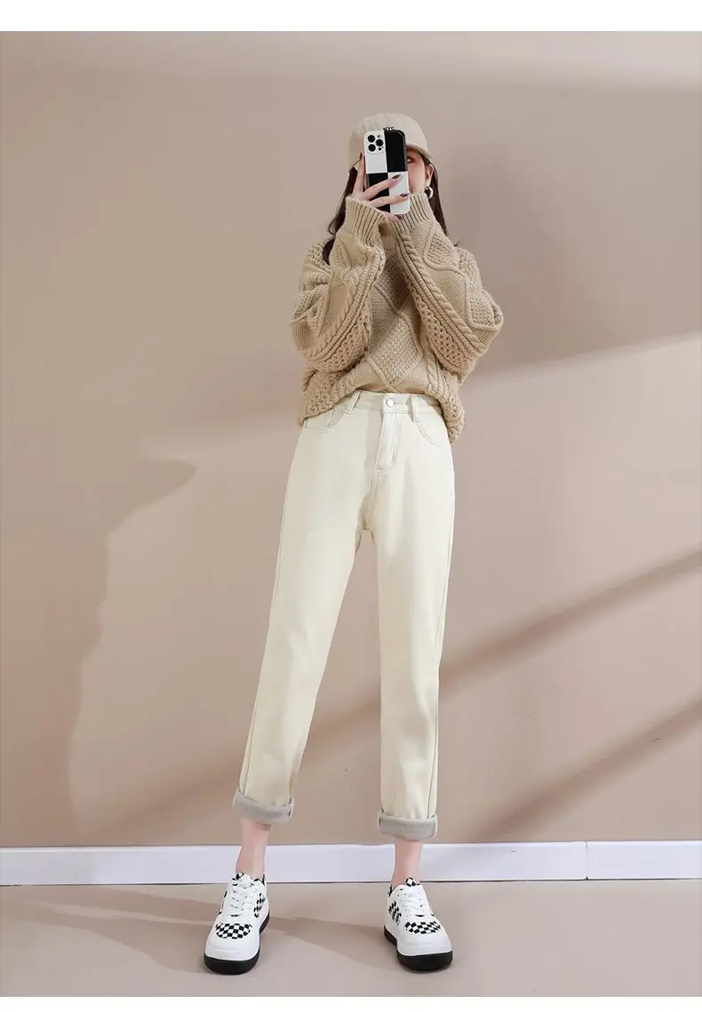 Autumn Winter Thick Velvet Women High Waist Y2K Jeans Simple Fleece Warm Stretch Ladies Casual Loose