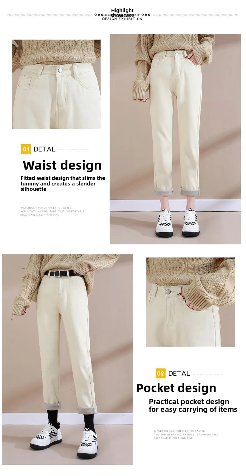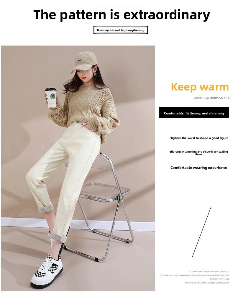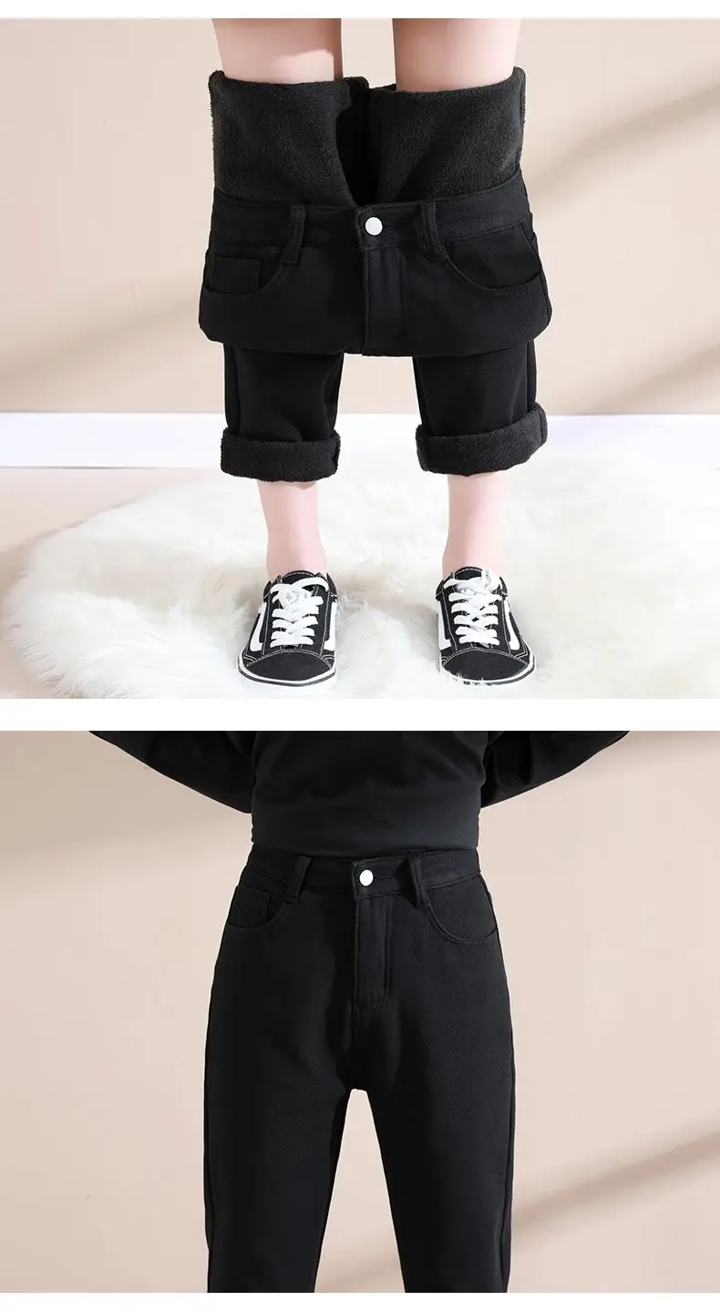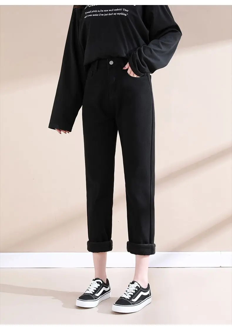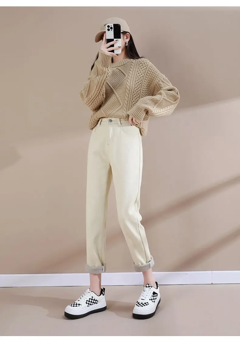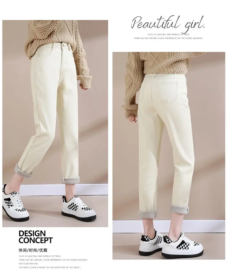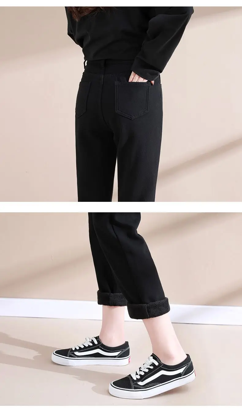 Autumn Winter Thick Velvet Women High Waist Y2K Jeans Simple Fleece Warm Stretch Ladies Casual Loose