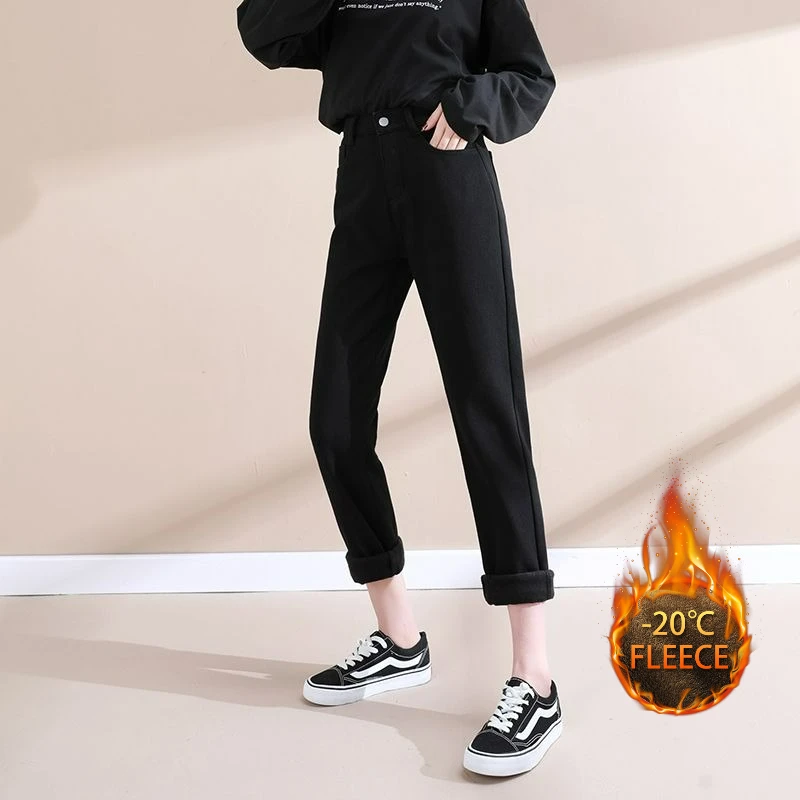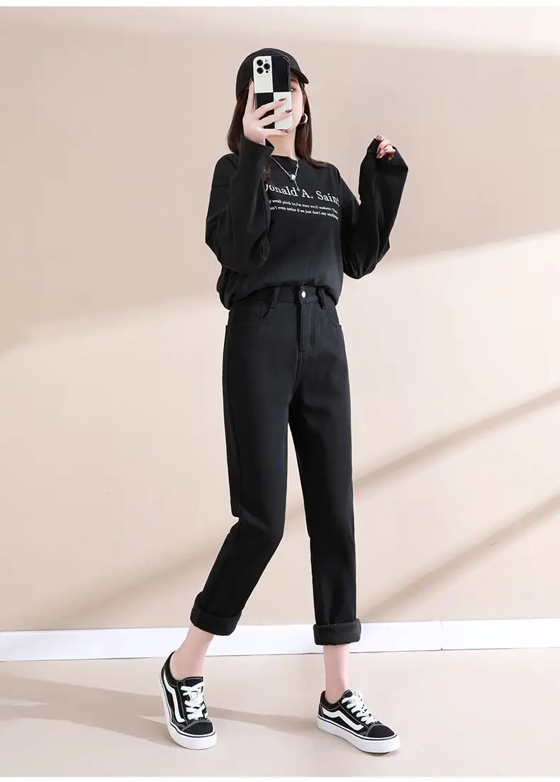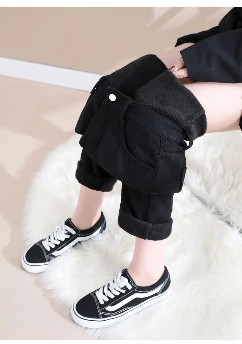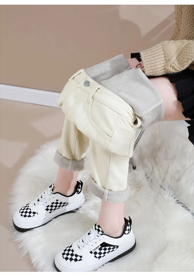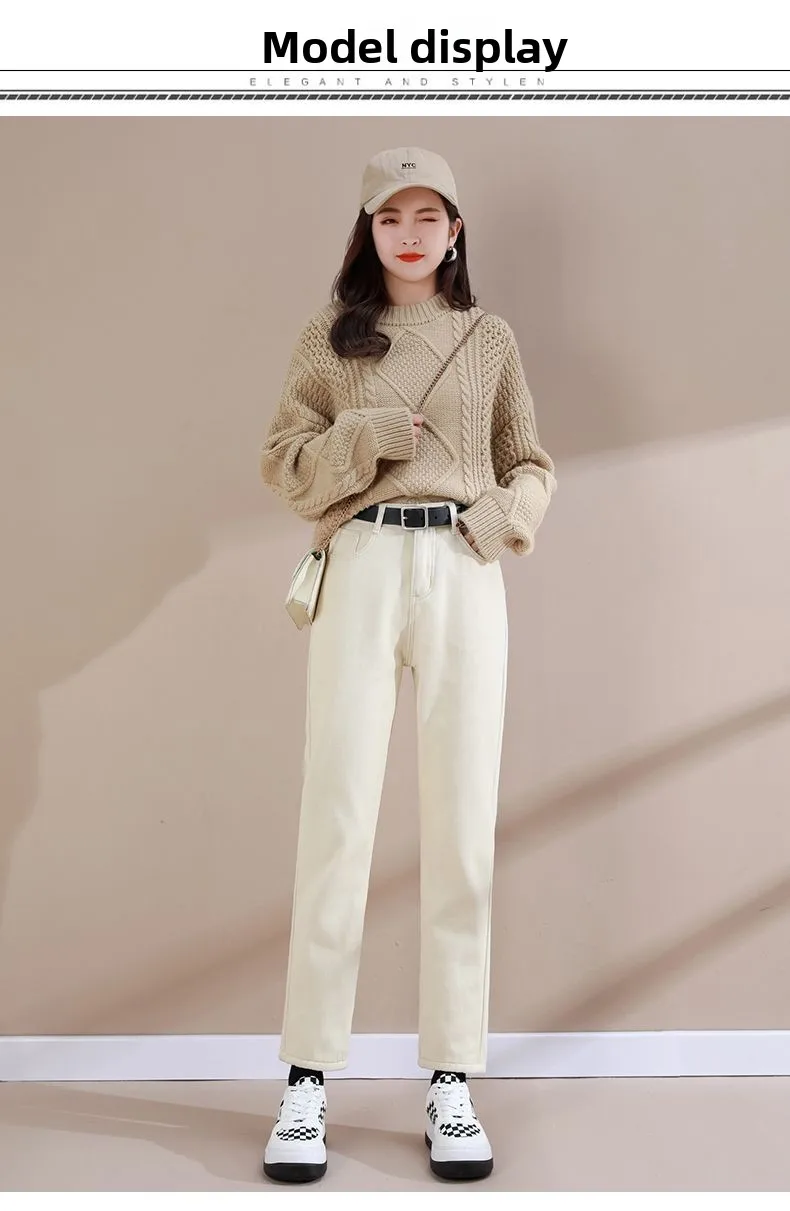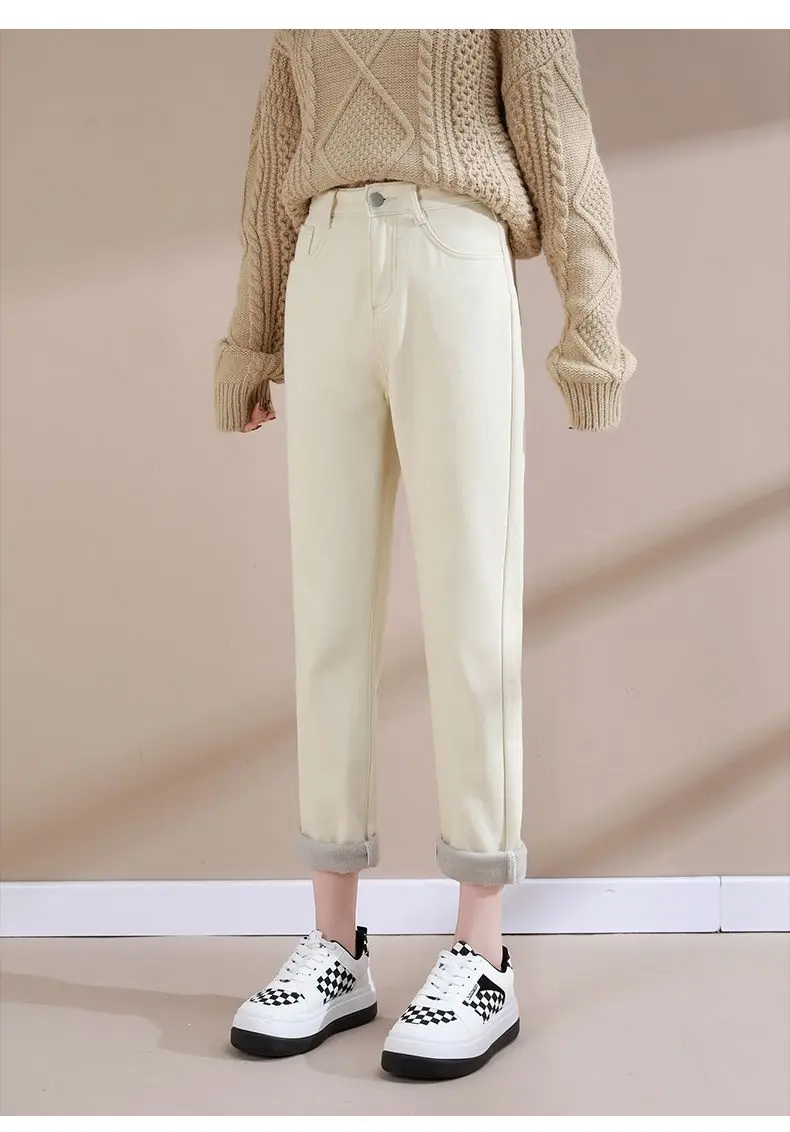 Autumn Winter Thick Velvet Women High Waist Y2K Jeans Simple Fleece Warm Stretch Ladies Casual Loose