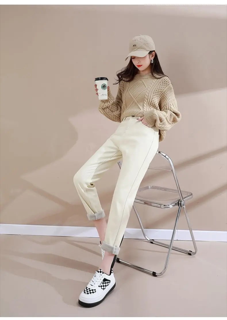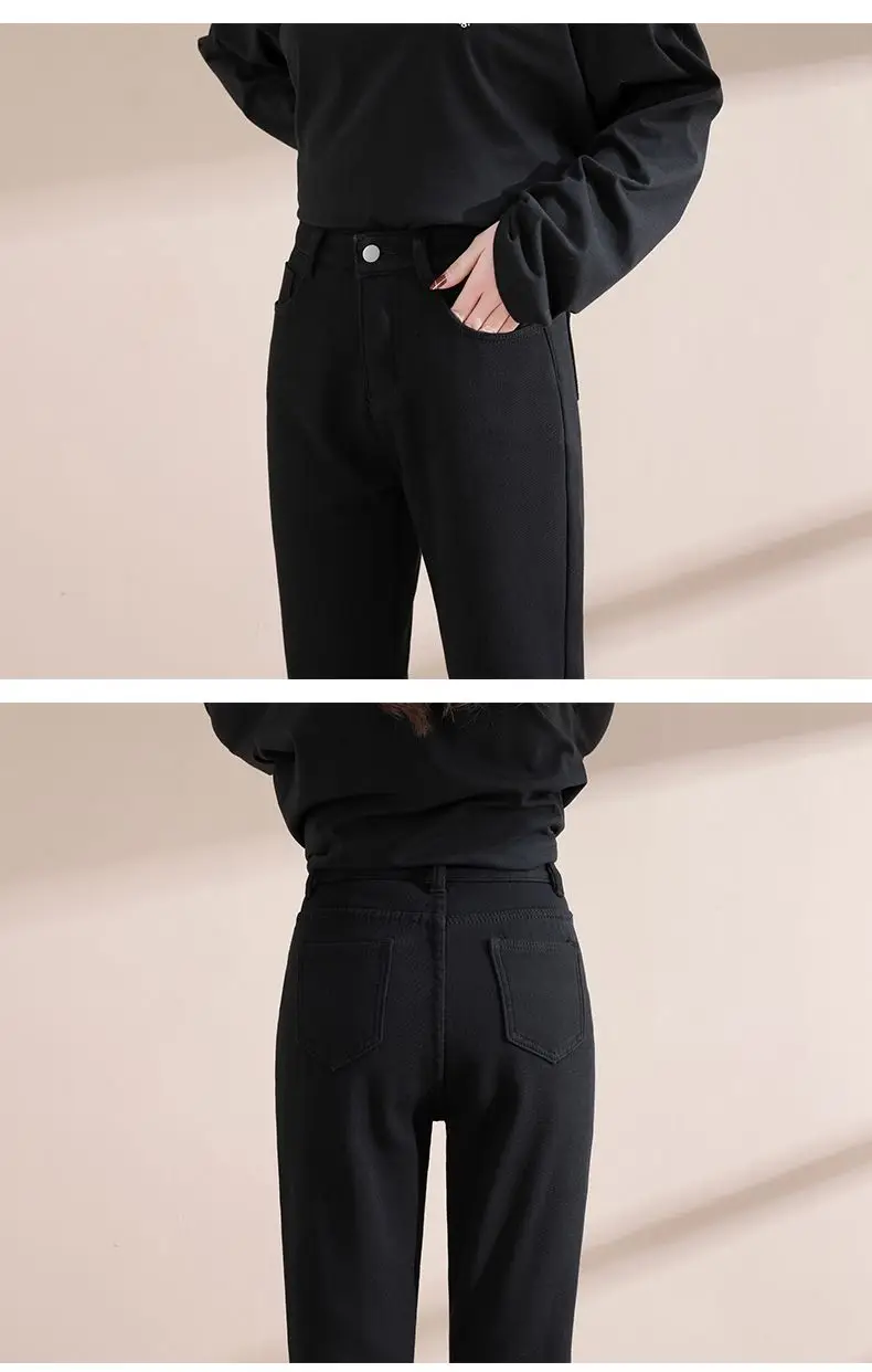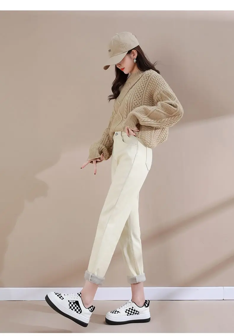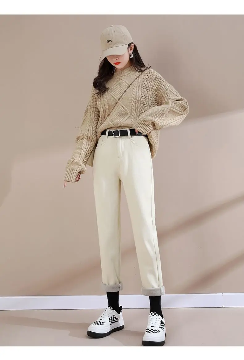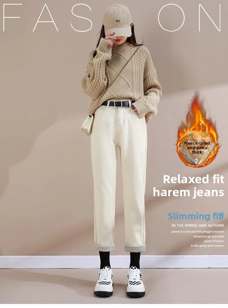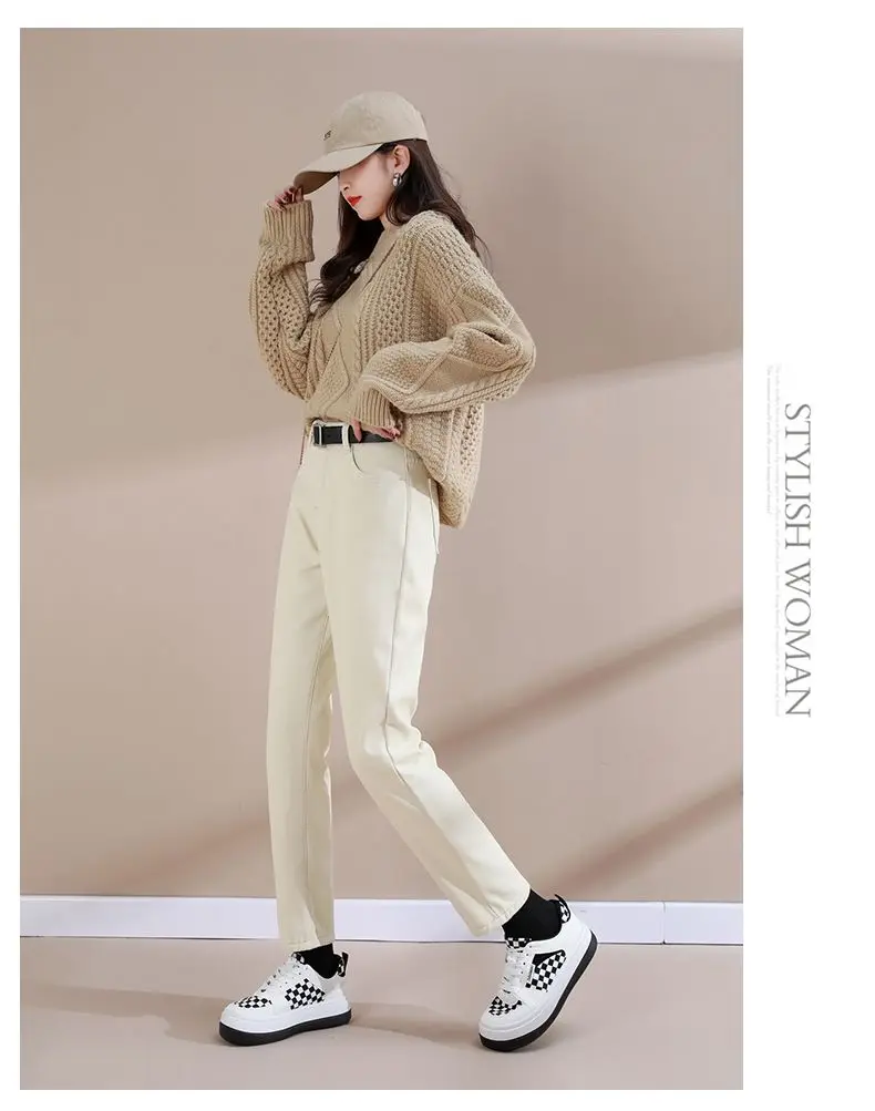 Autumn Winter Thick Velvet Women High Waist Y2K Jeans Simple Fleece Warm Stretch Ladies Casual Loose